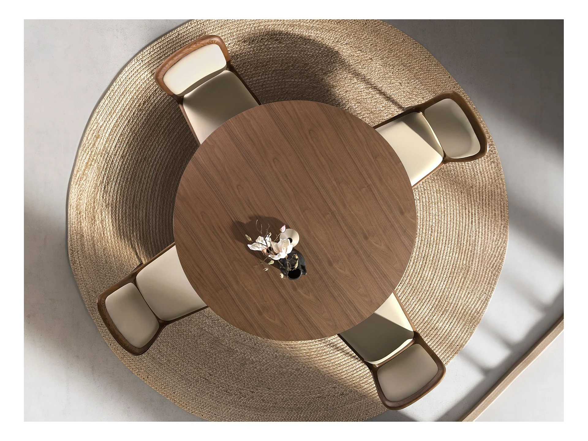 Runder Esstisch aus dunklem Nussbaum und Holz mit Kunstlederpolsterung 1168 ANGEL CERDA