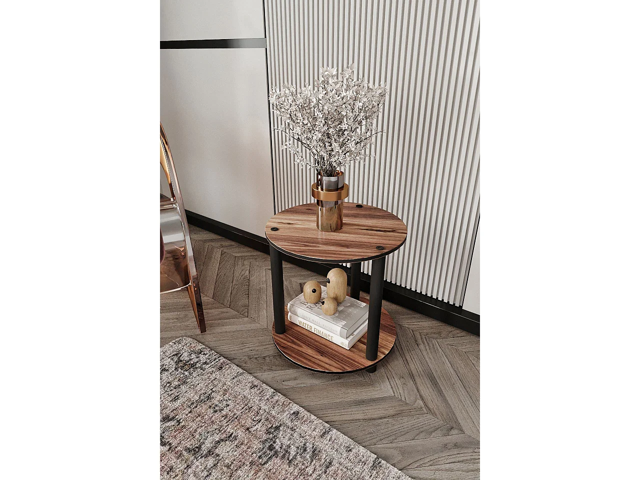 Rundes Regal mit zwei Ebenen aus Walnussholz – Hochwertiges modernes Design