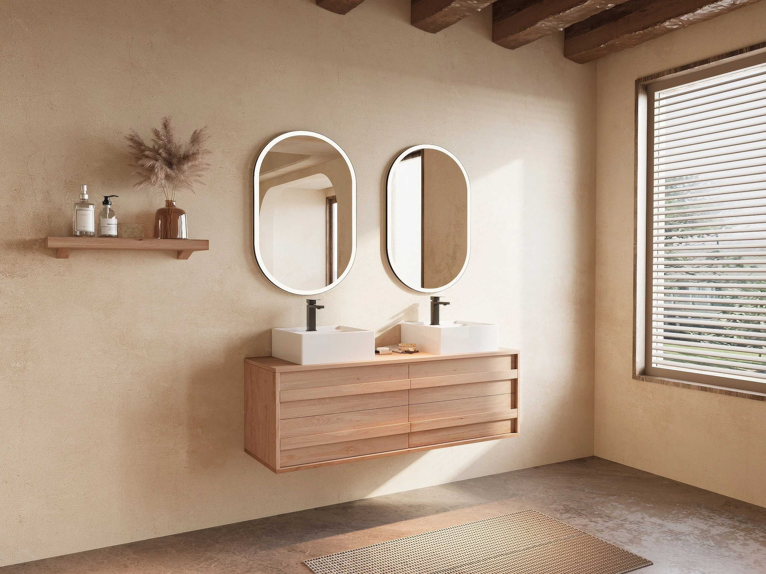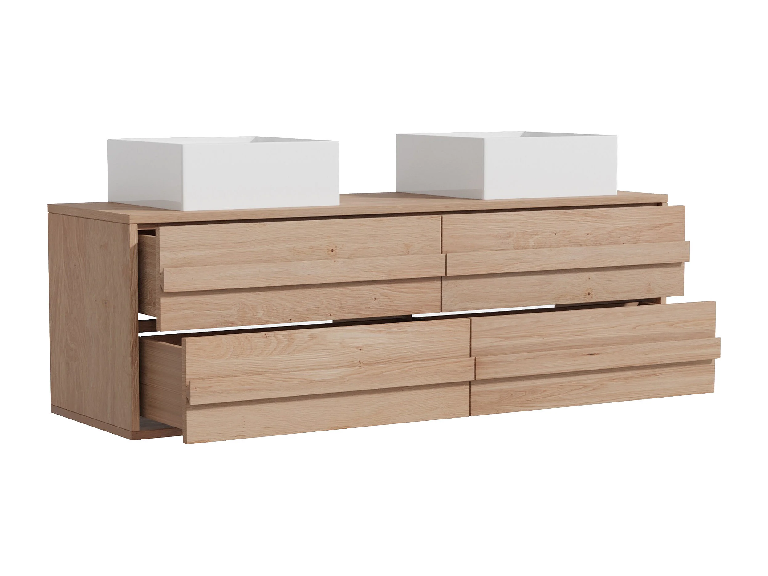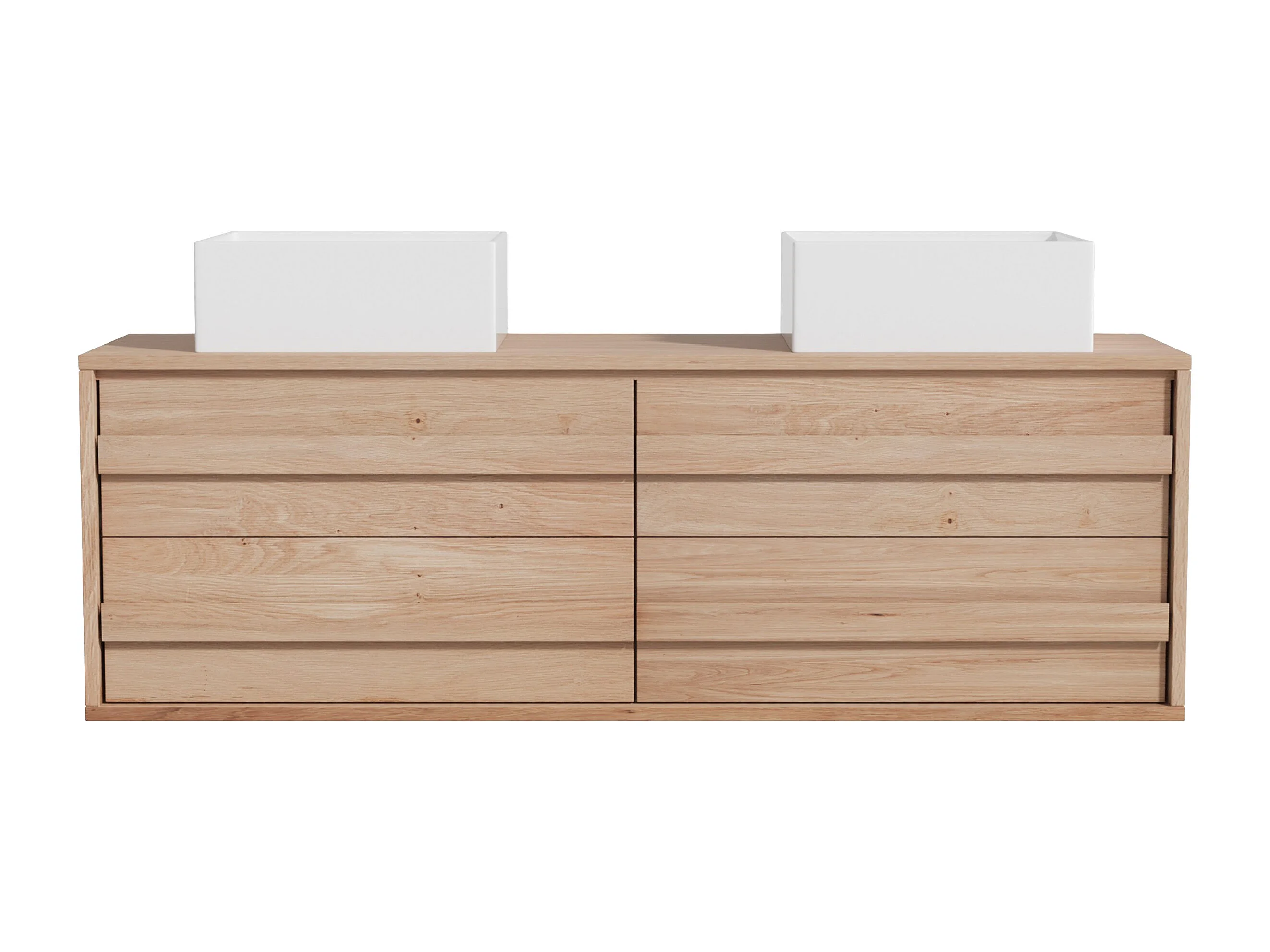 Hängender Unterschrank aus Massivholz Eiche mit quadratischem Aufsatzbecken - Hell Natur - 150 cm - SARLO