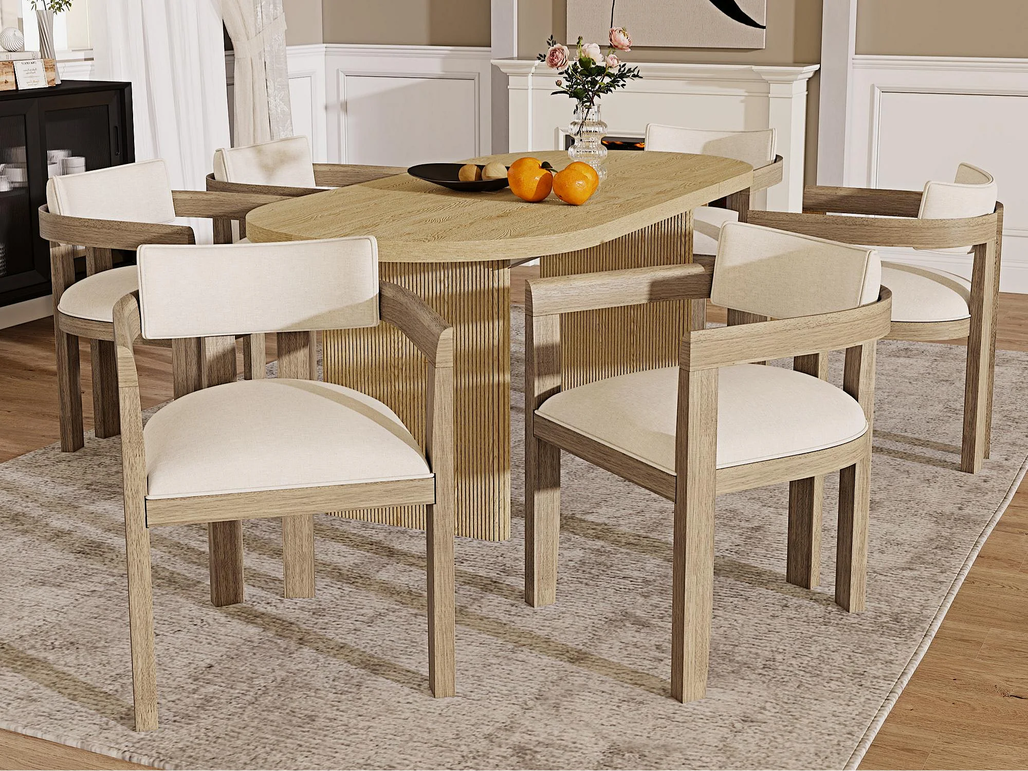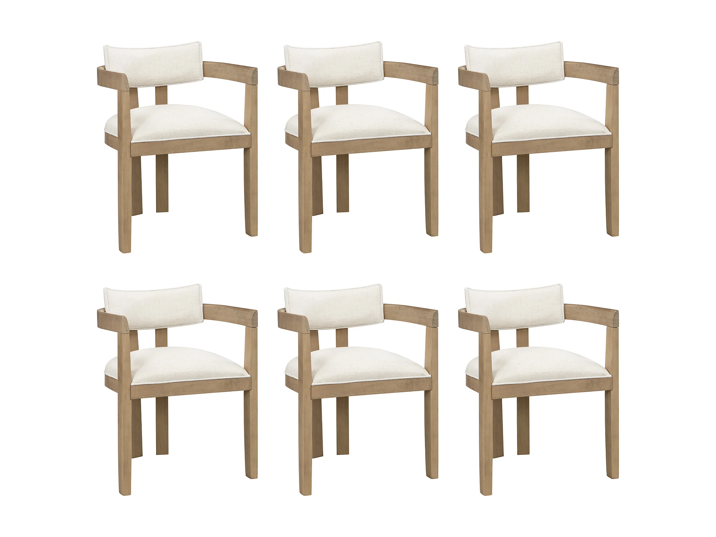 Satz mit 6 Massivholz-Stühlen mit Armlehnen - Gestell aus Massivholz - Bezug aus Leinen - natur