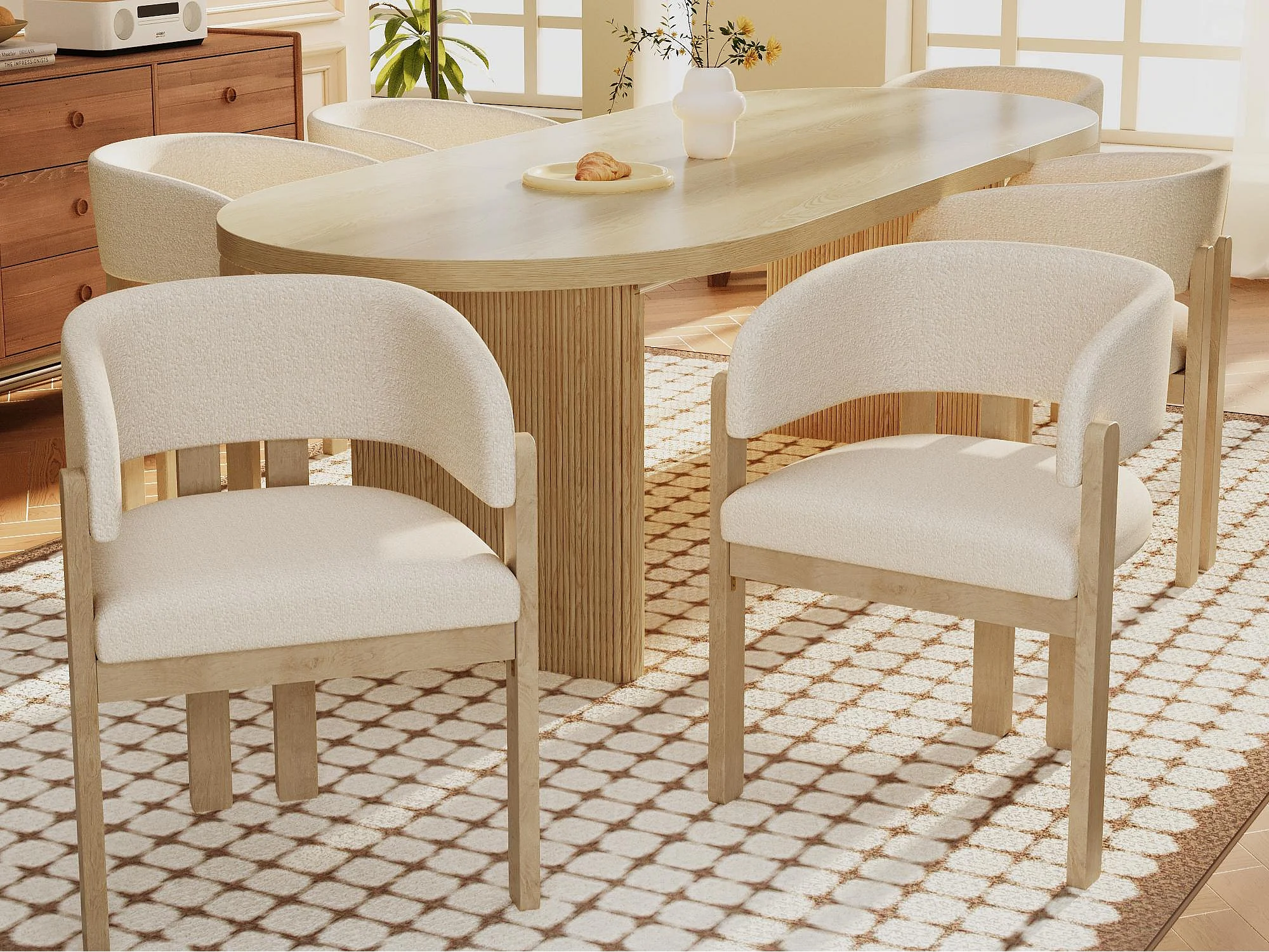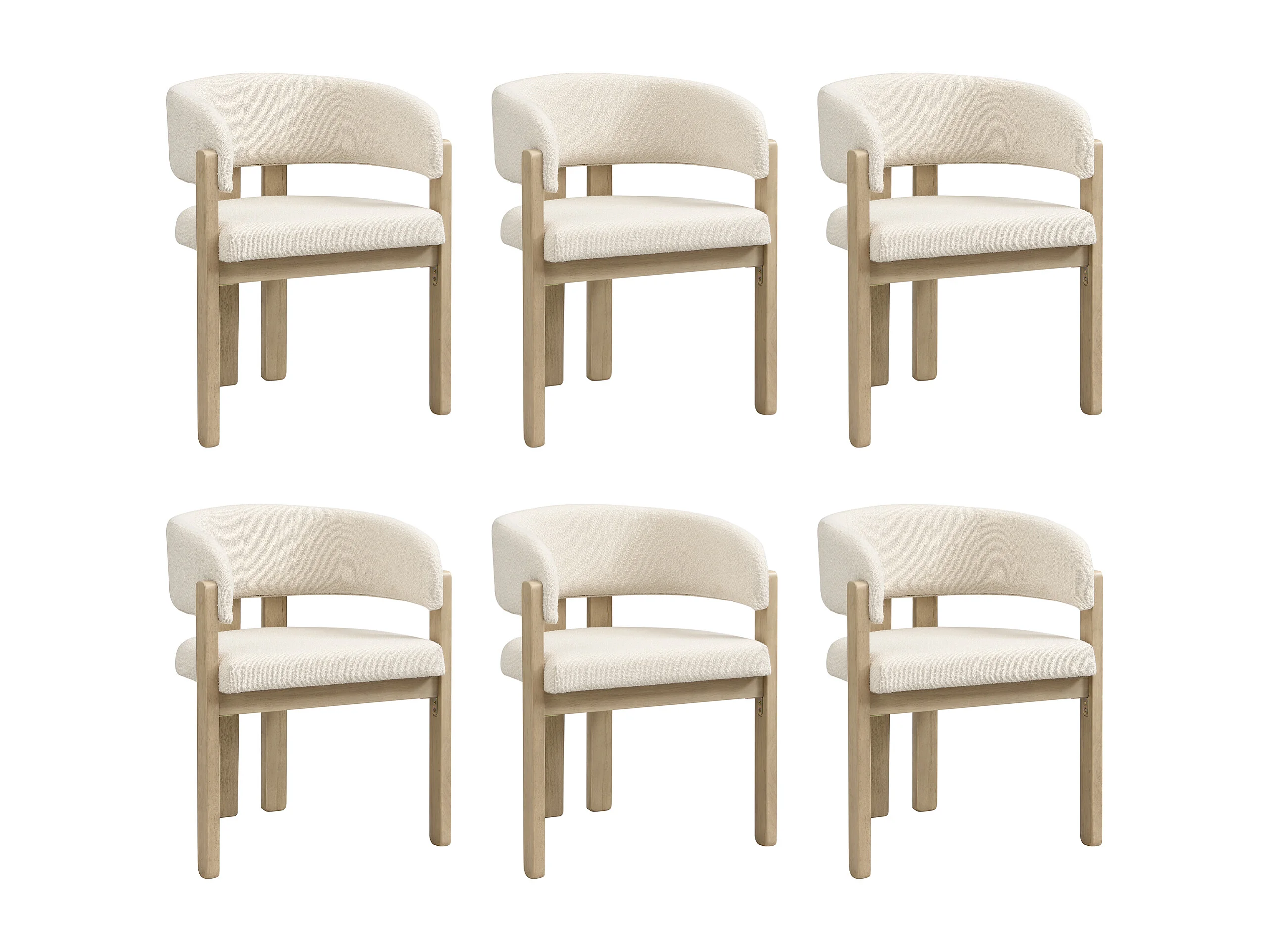 Satz mit 6 Massivholz-Stühlen mit Armlehnen - Gestell aus Massivholz - Bouclé-Stoff - Natur