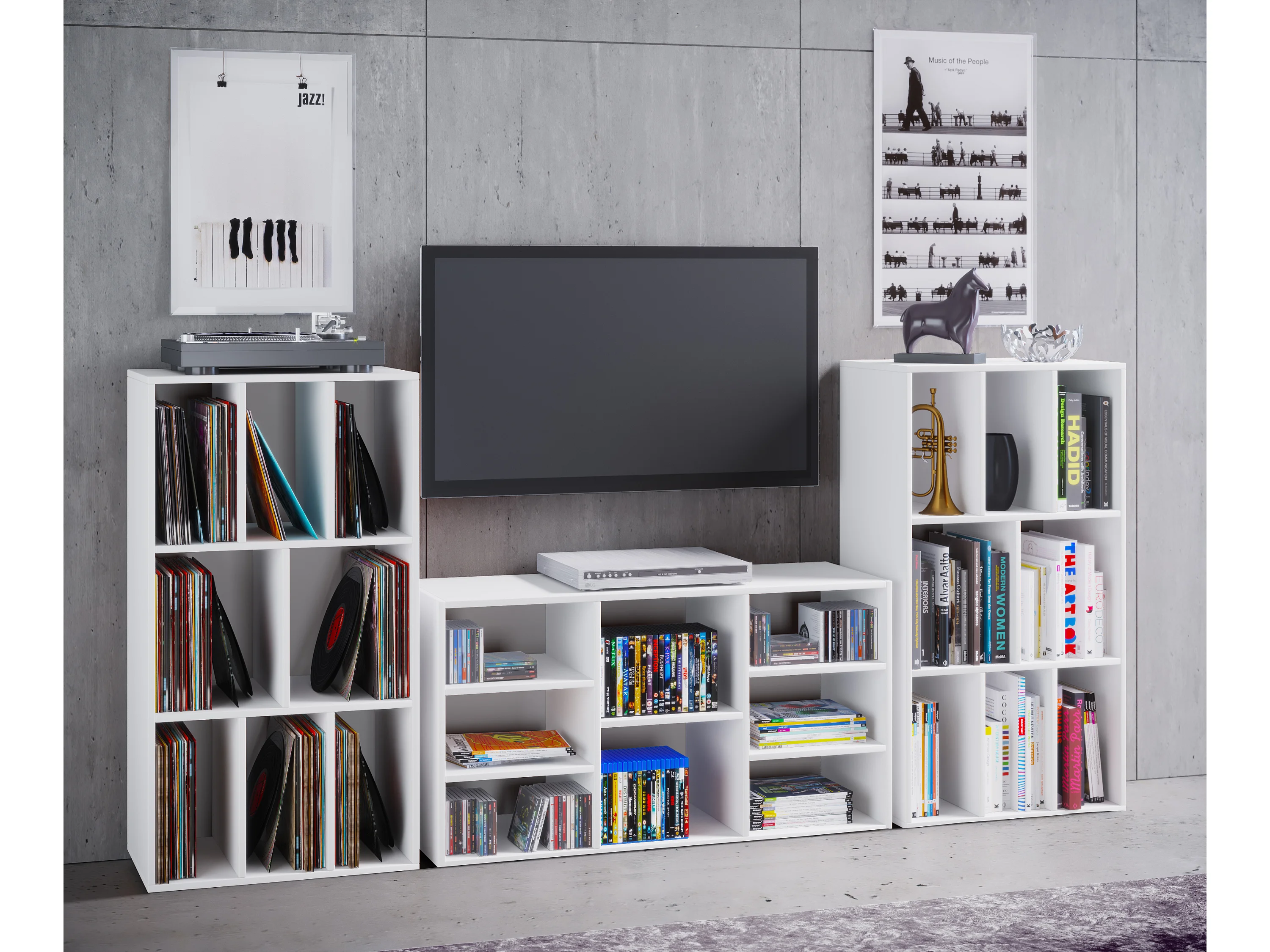 Wohnwand und Regal Weiß