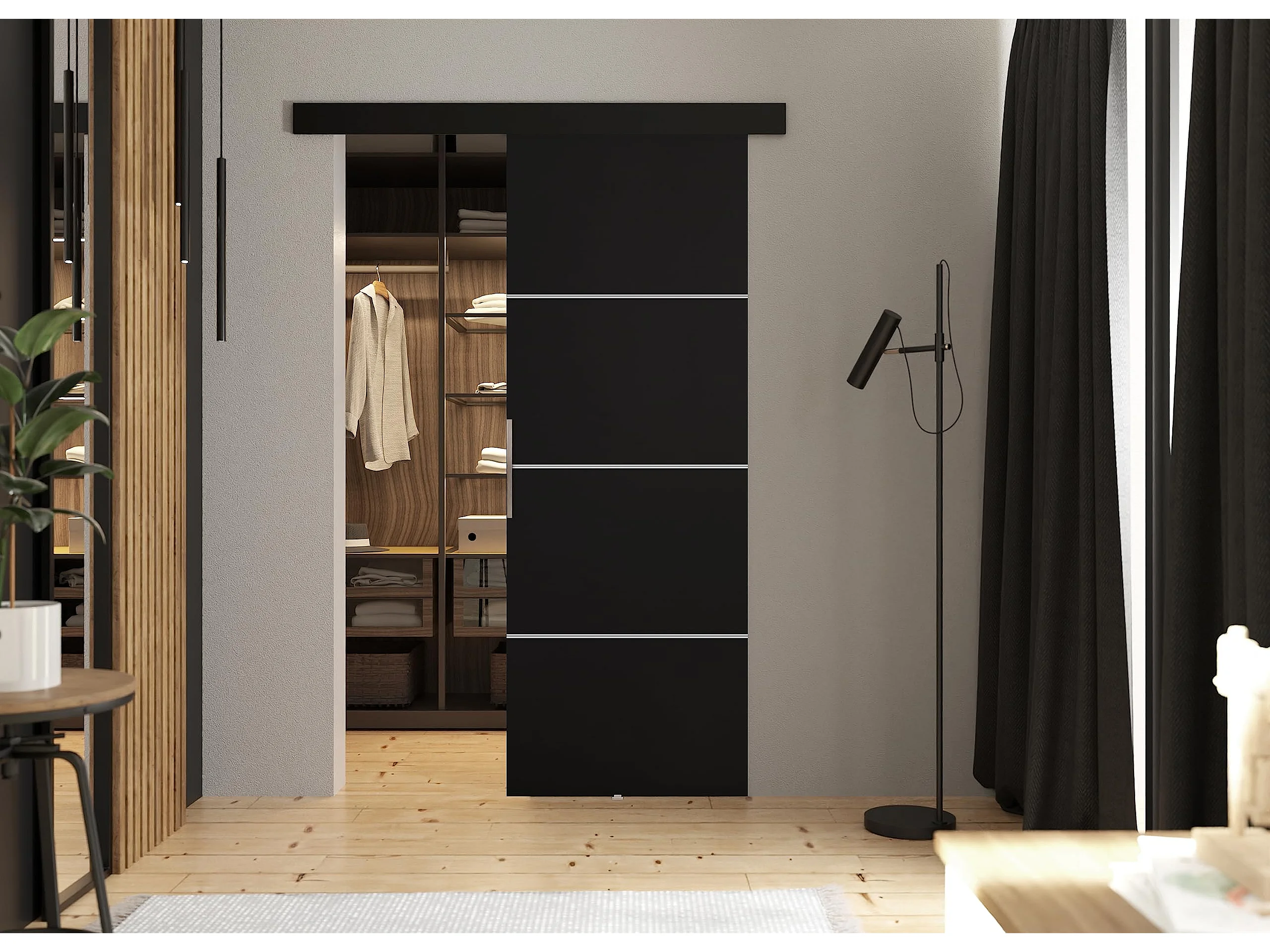Schiebetür mit Abdeckleiste MALIBU PLUS 60 Schwarz
