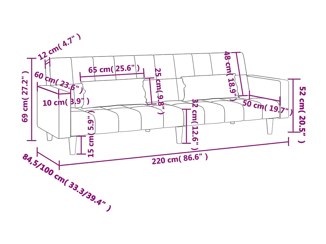 Schlafsofa 2-Sitzer mit 2 Kissen Blau Samt