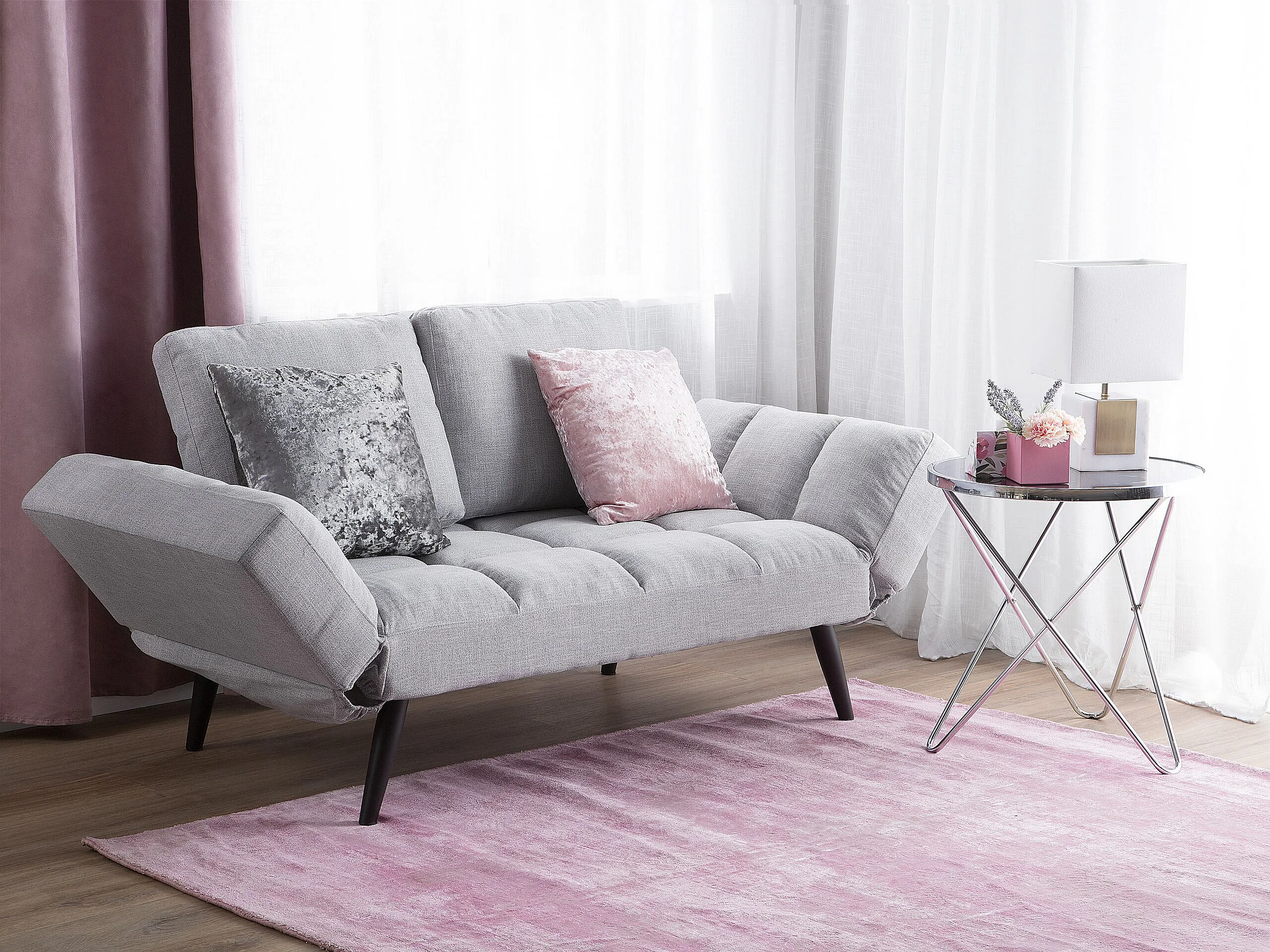 Modernes Schlafsofa in Hellgrau mit Polsterbezug verstellbaren Armlehnen Brekke