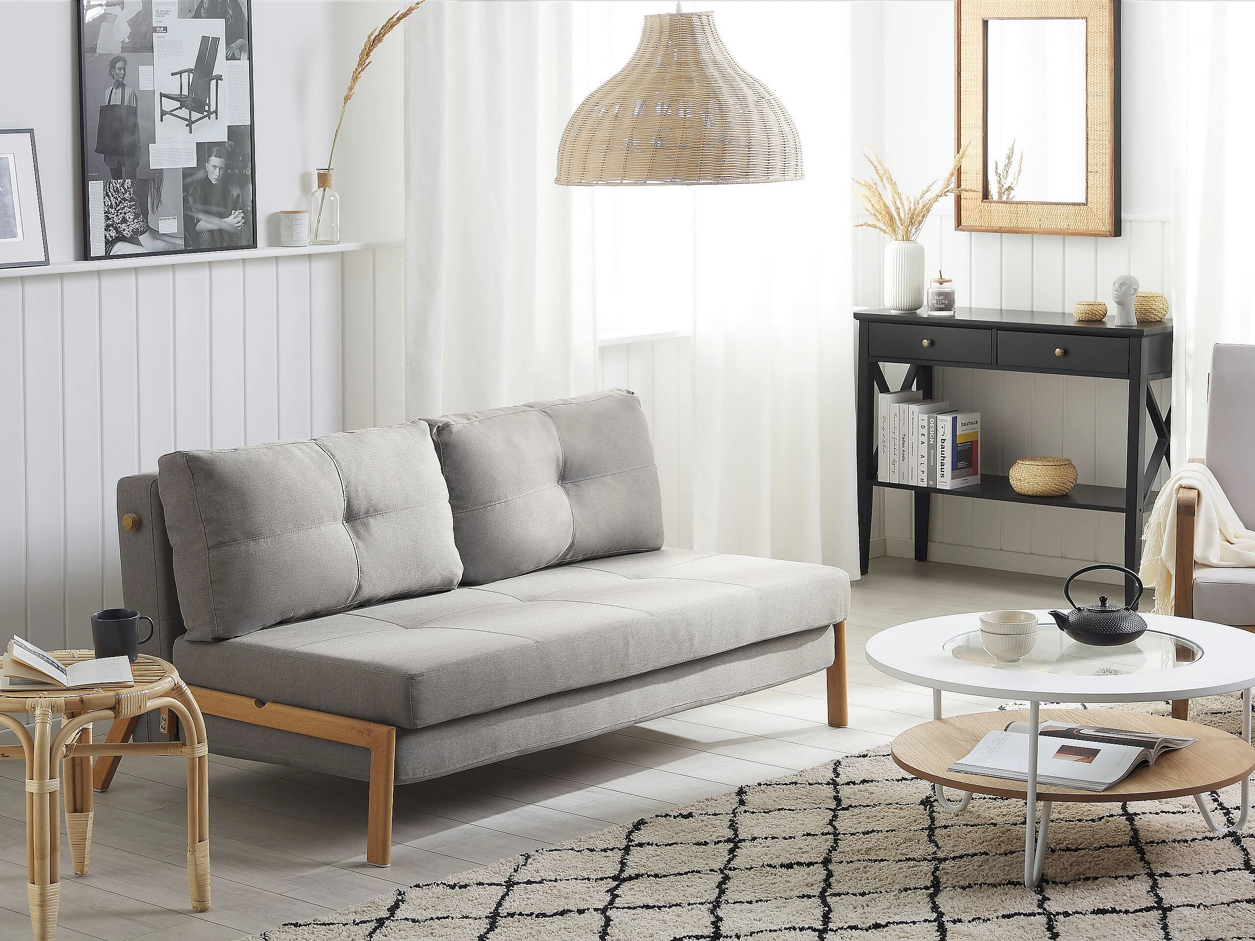2-Sitzer Schlafsofa Stoffbezug helles Grau gesteppt hohe Metallbeine Edland