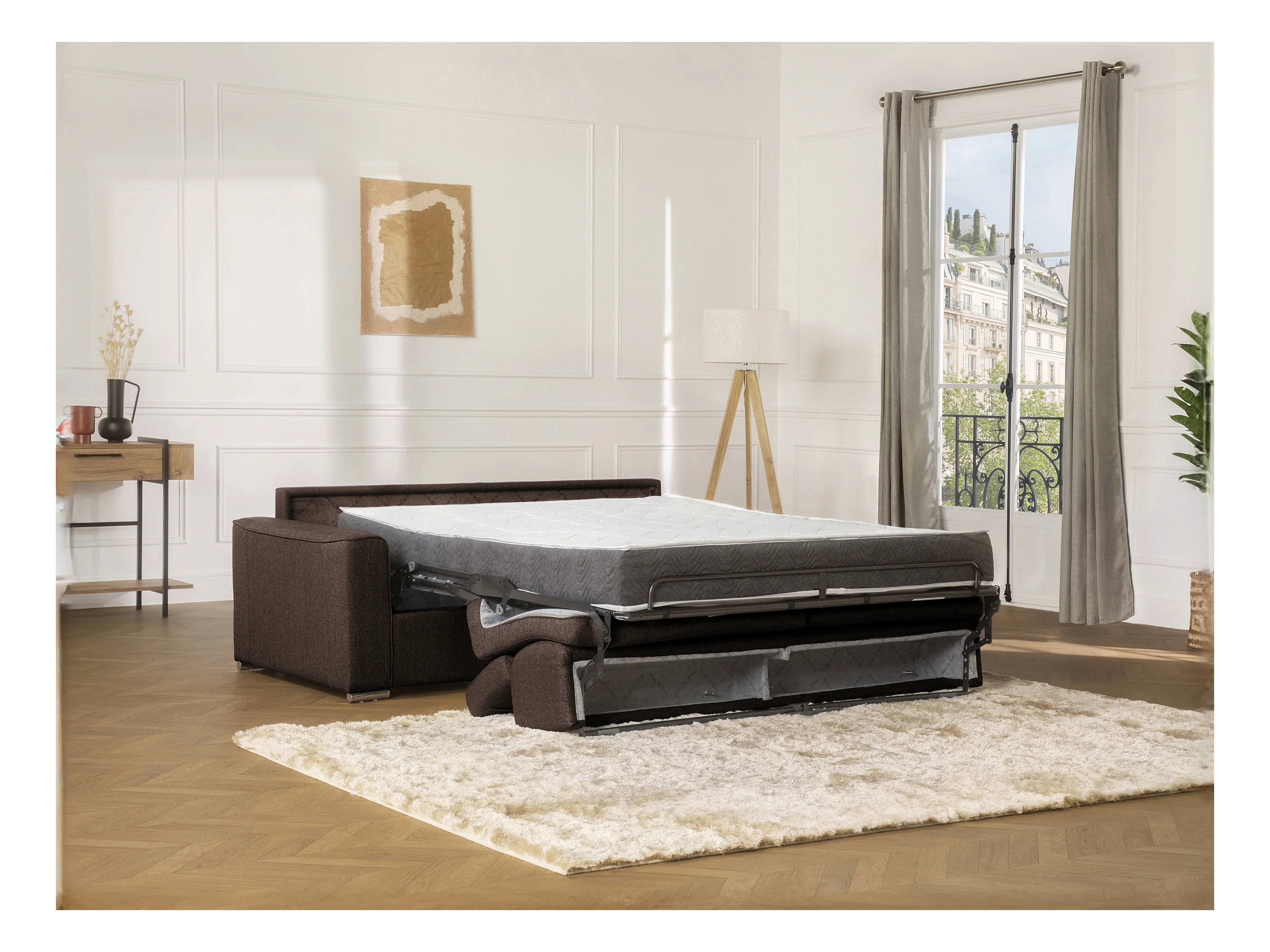 Schlafsofa 3-Sitzer - Liegefläche: 140 cm - Matratzenhöhe: 16 cm mit Memory Schaum - Stoff - Braun - VIZIR