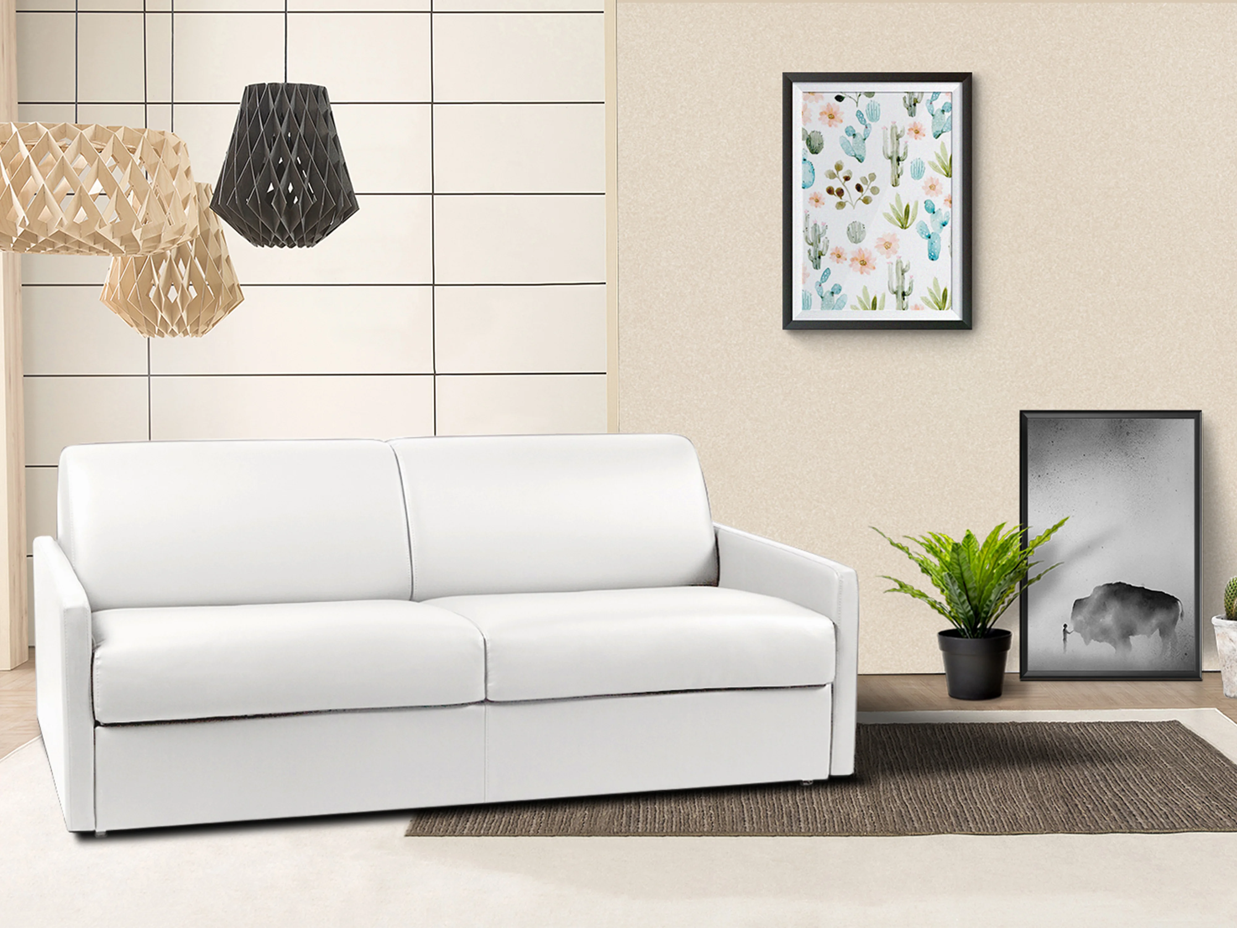 Schlafsofa 4-Sitzer - Liegefläche: 160 cm - Matratzenhöhe: 22 cm mit Memory Schaum - Kunstleder - Weiß - CALIFE