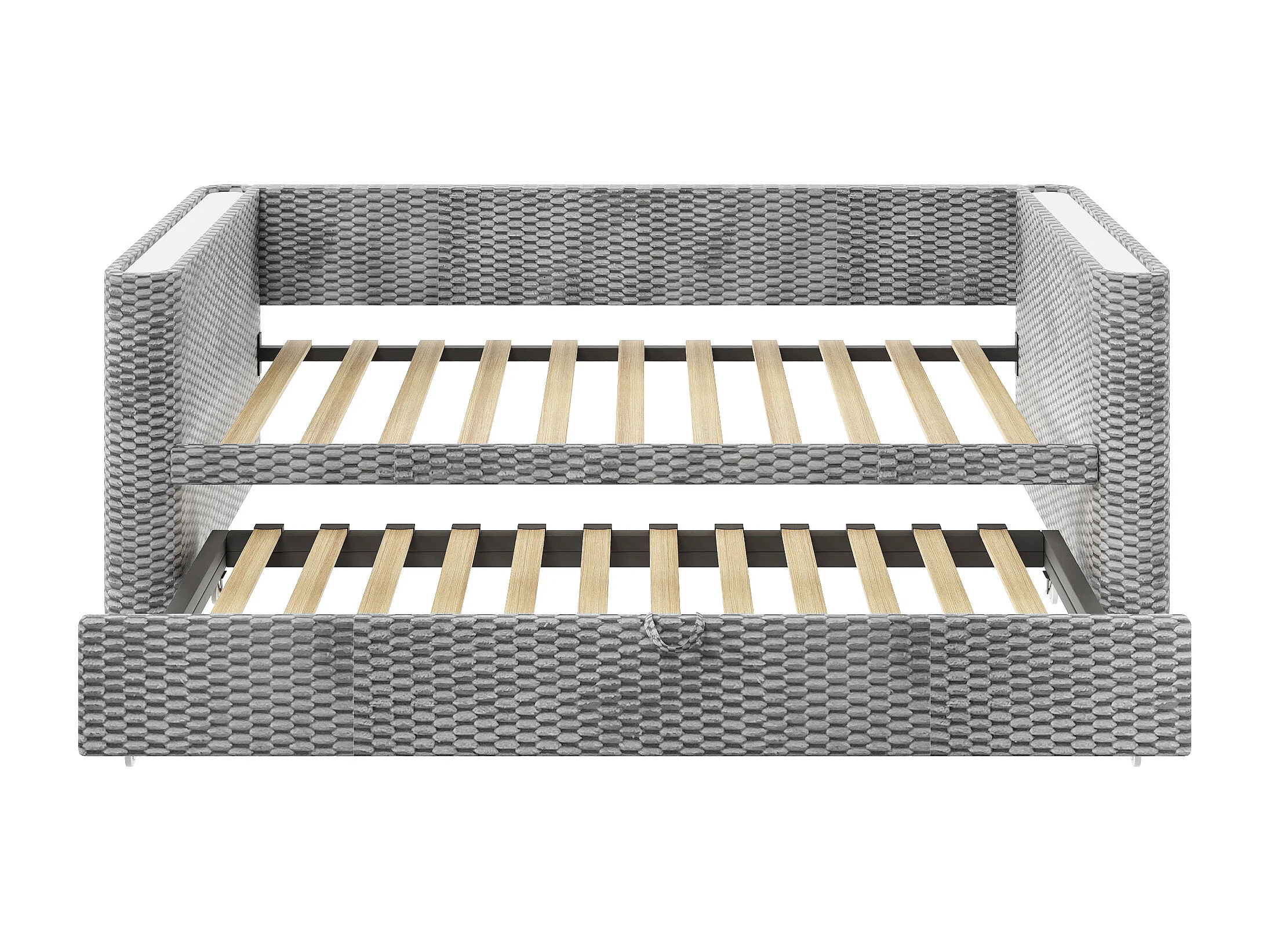 90 x 200 cm großes Schlafsofa aus Samt – mit Ladefunktion und LED – mit Lattenrost – Grau