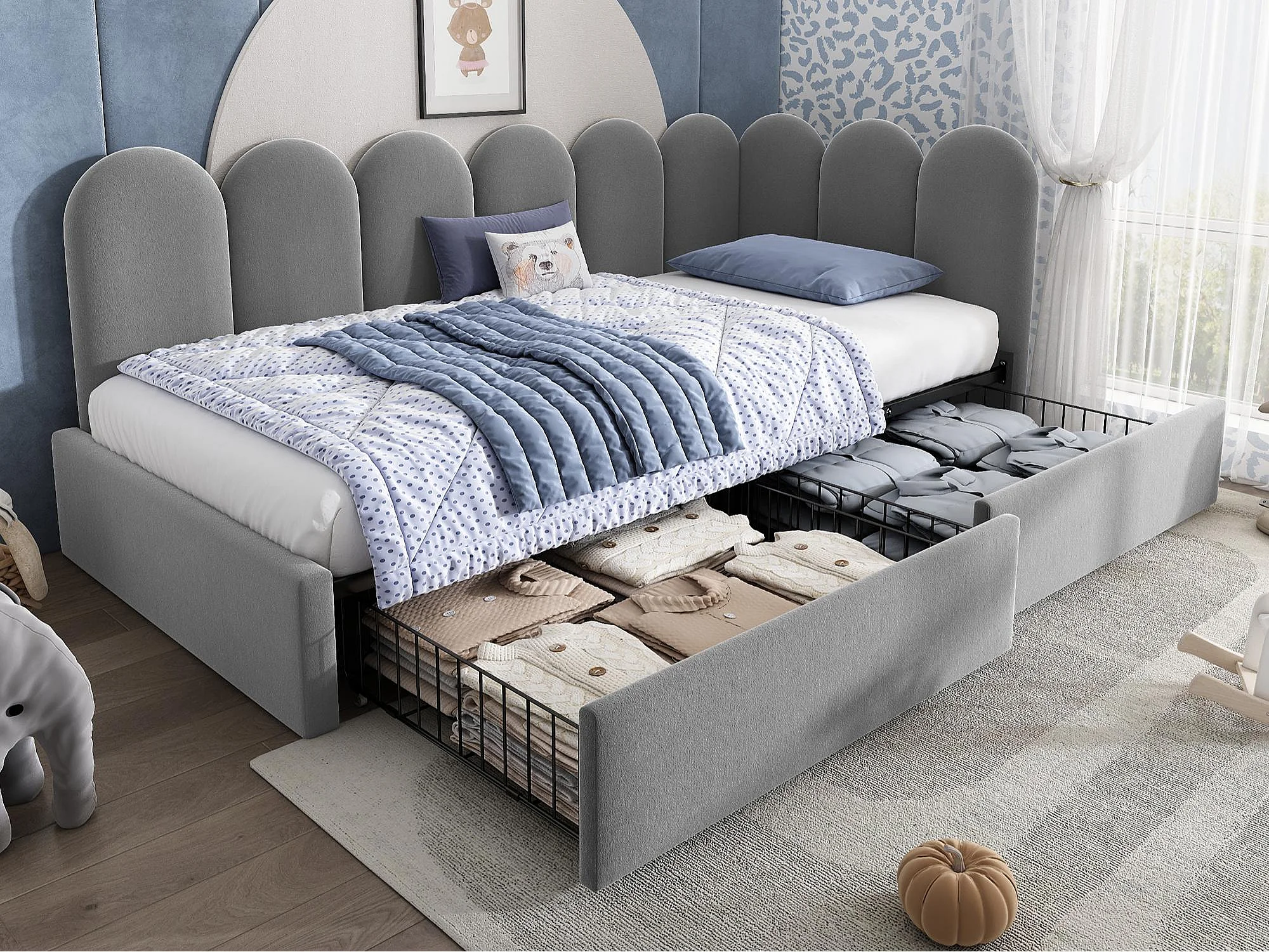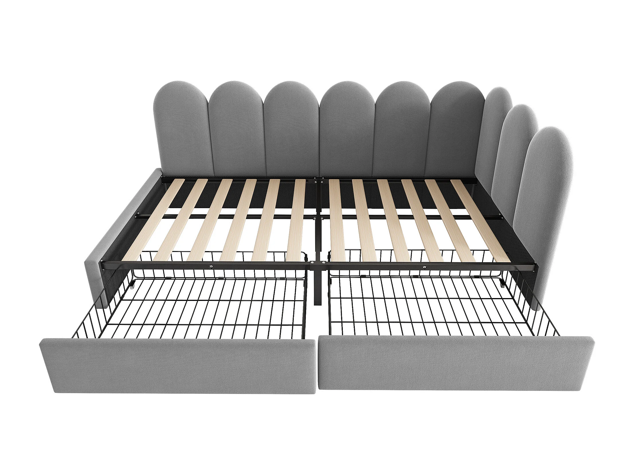 Schlafsofa 90x190 cm - mit 2 Schubladen - Samtstoff - mit Lattenrost - Grau​ (ohne Matratze)