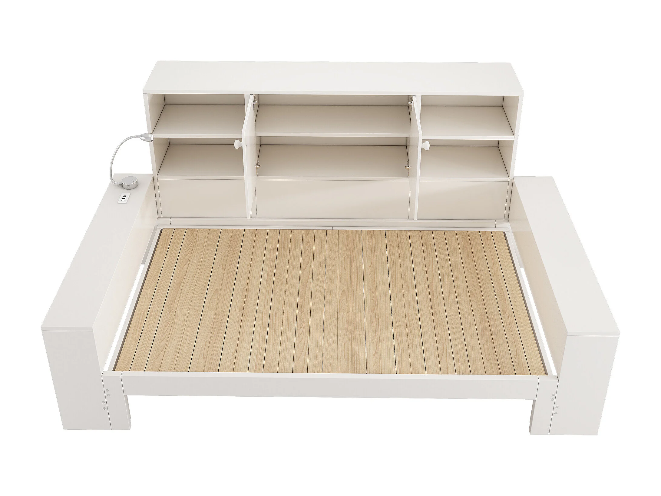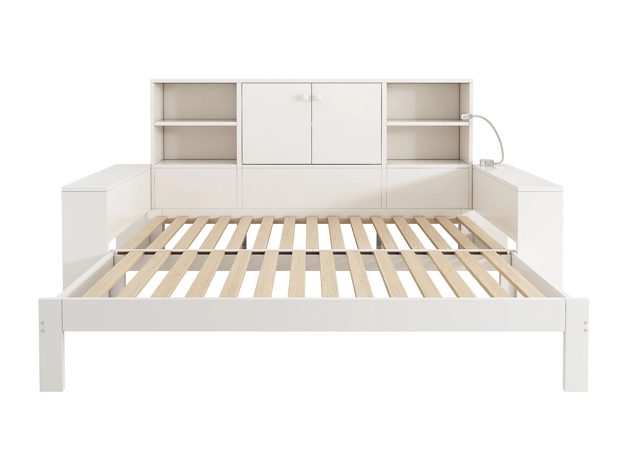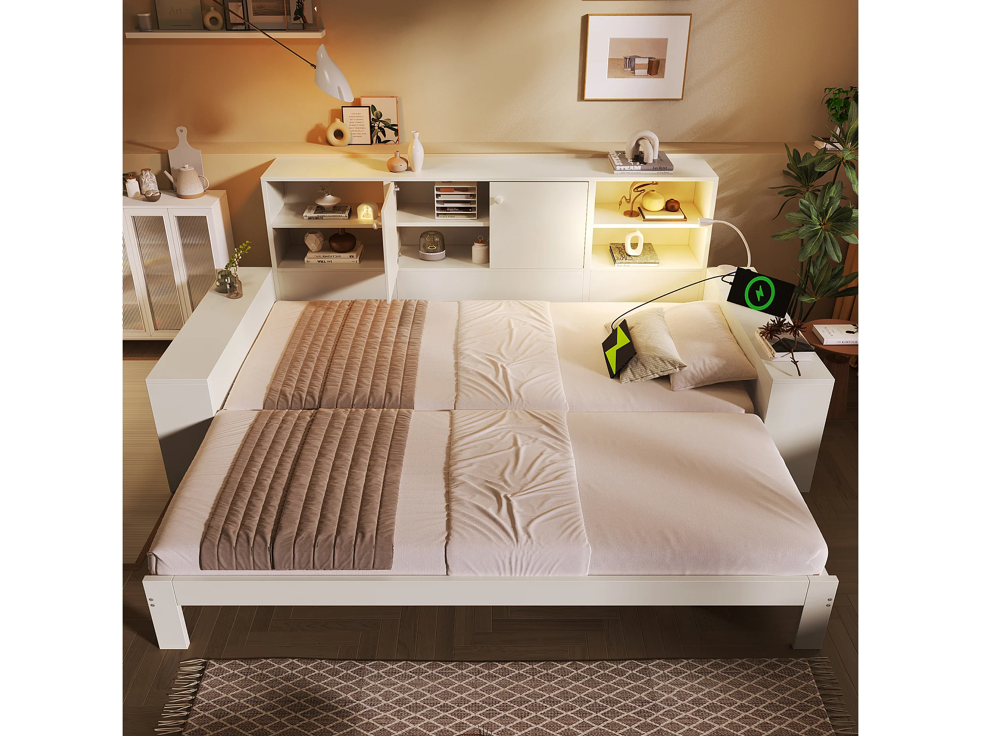 Schlafsofa 90x200cm - mit Gästebett und Leselicht - mit USB/USB-C-Anschluss - mit 2 Türen und Stauraum - weiß​ (ohne Matratze)