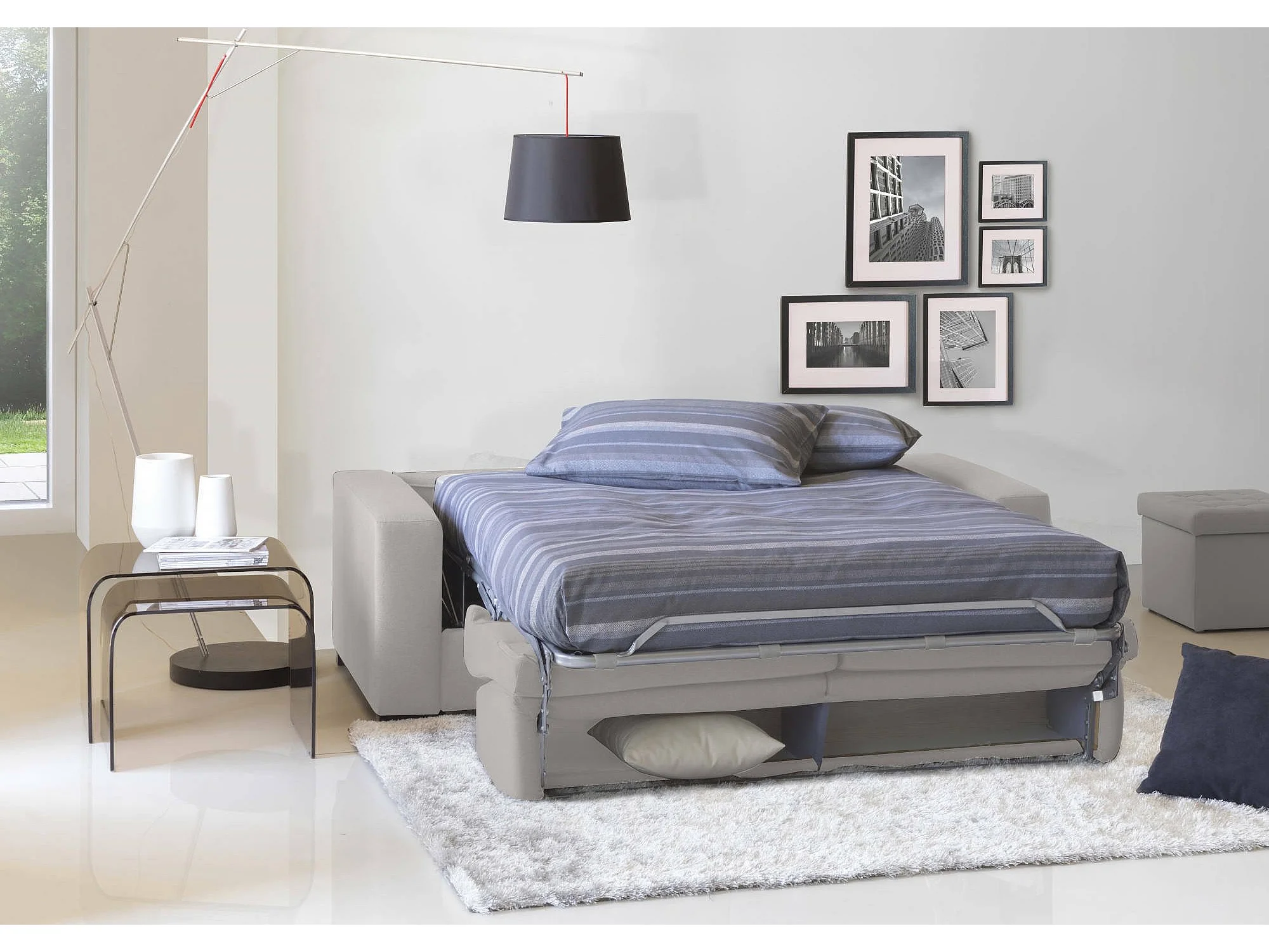Schlafsofa Dabakah, 3-Sitzer-Sofa, 100% Made in Italy, Wohnzimmersofa mit drehbarer Öffnung, aus gepolstertem Stoff, mit schmalen Armlehnen, Cm 200x95h90, Grau