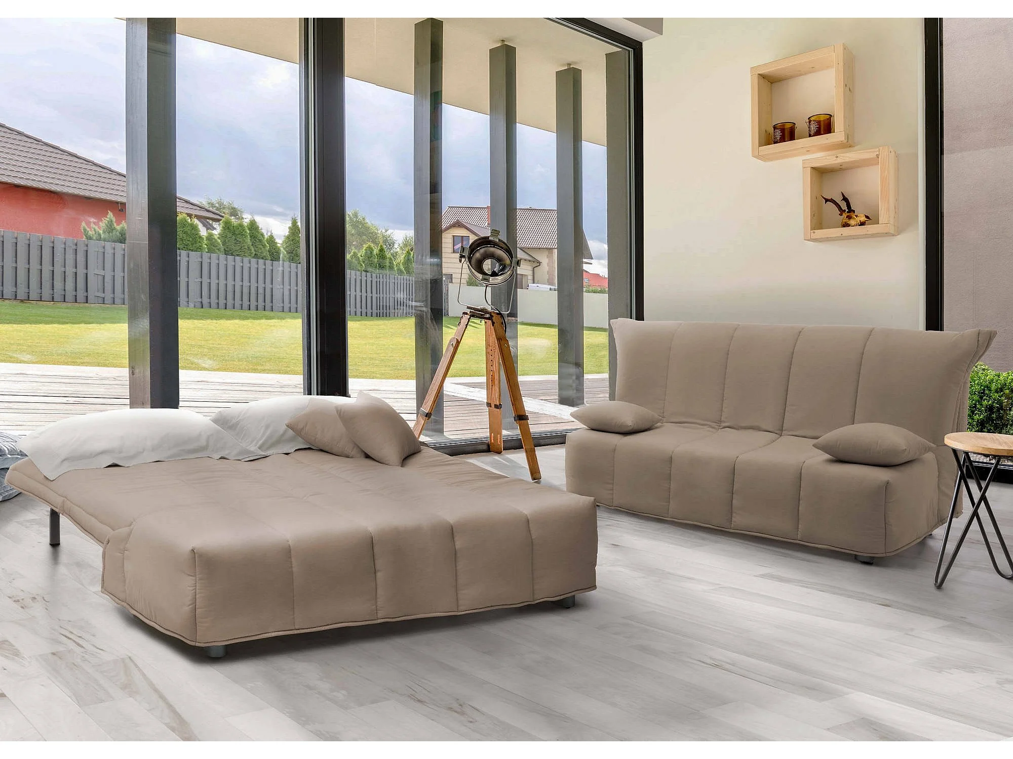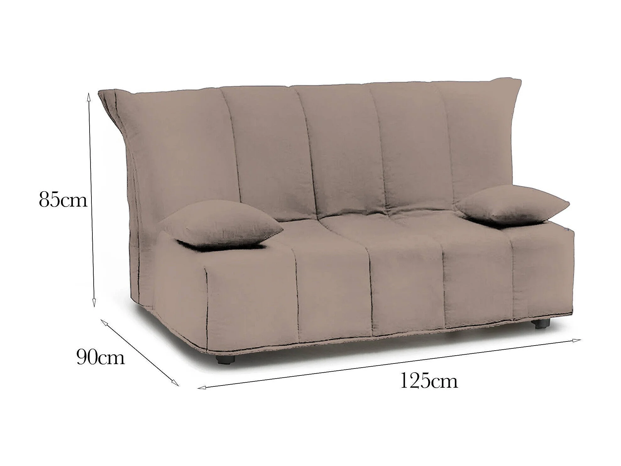 Schlafsofa Dabald, 2-Sitzer-Sofa, 100% Made in Italy, Wohnzimmersofa mit Trolley-Öffnung, aus gepolstertem Stoff, inklusive Kissen, Cm 125x90h85, Turteltaube
