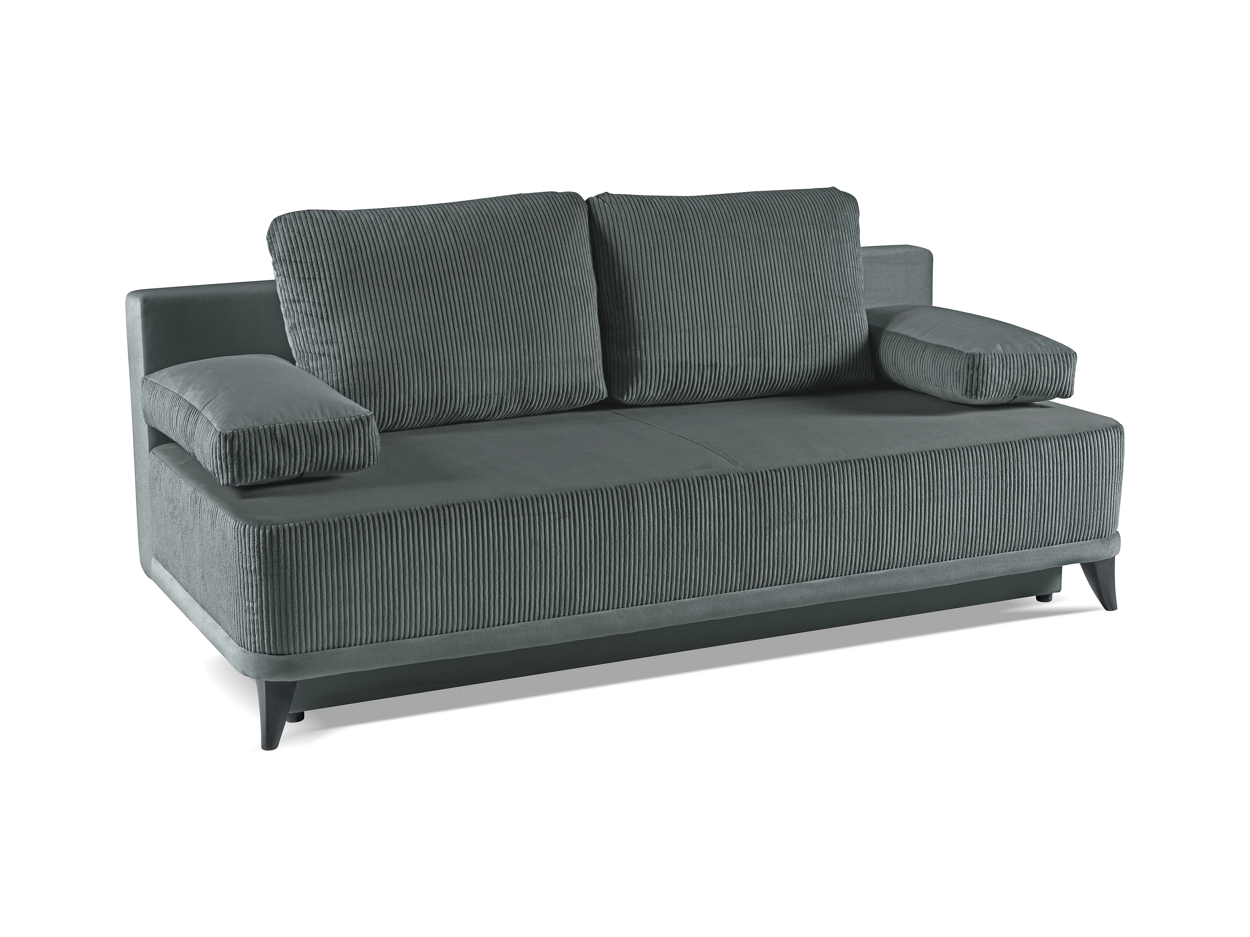 Sofa OLIO Schlafsofa mit Bettkasten, Dekokissen, Klappfunktion, skandinavisches Design, Farbe: DUNKELGRAU