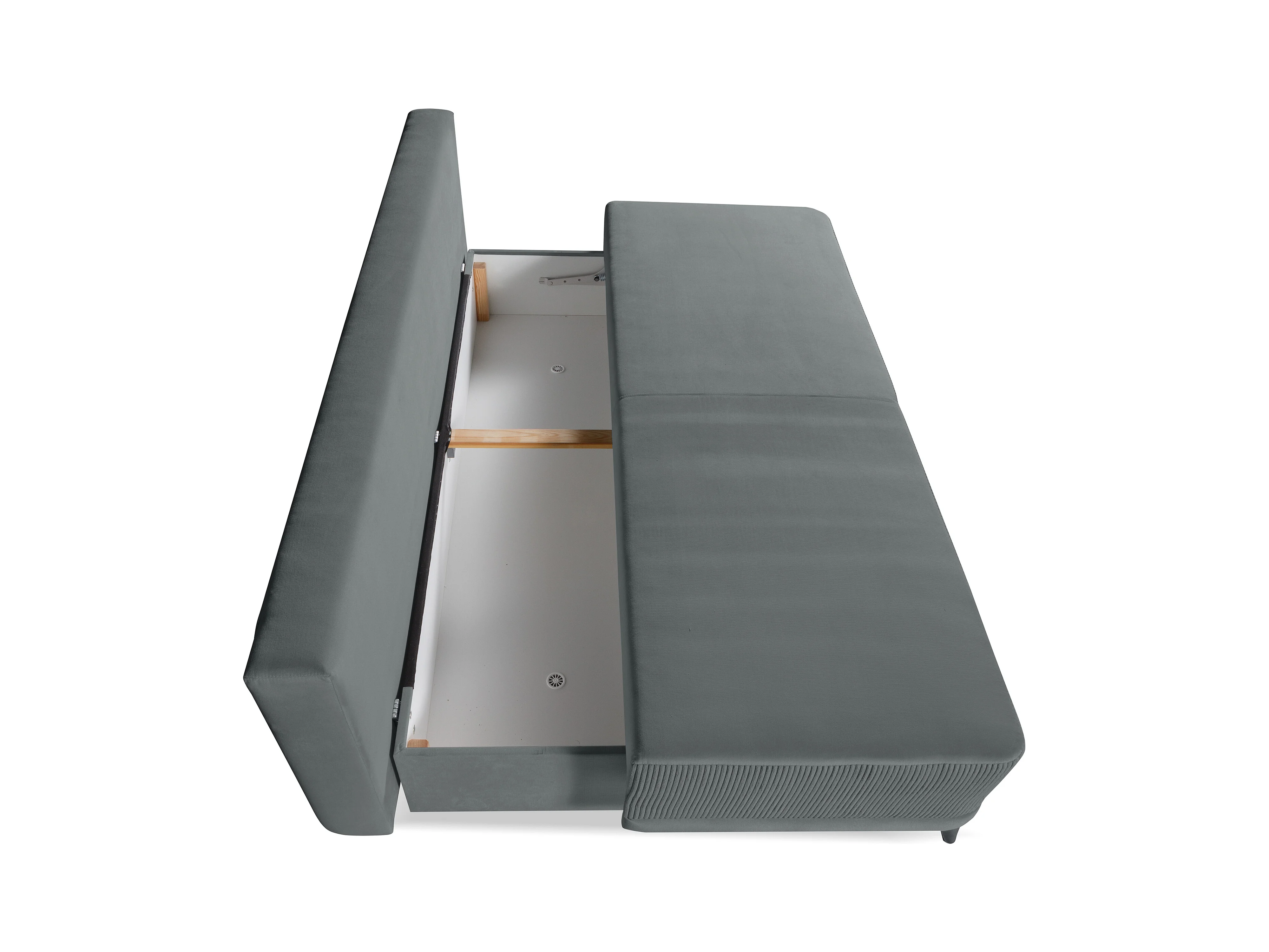 Sofa BOHO - Schlafsofa 140x200cm, Holzfüße, Bettzeugaufbewahrung, PUR-Schaumstoffpolsterung, 244x92x102cm GRAU