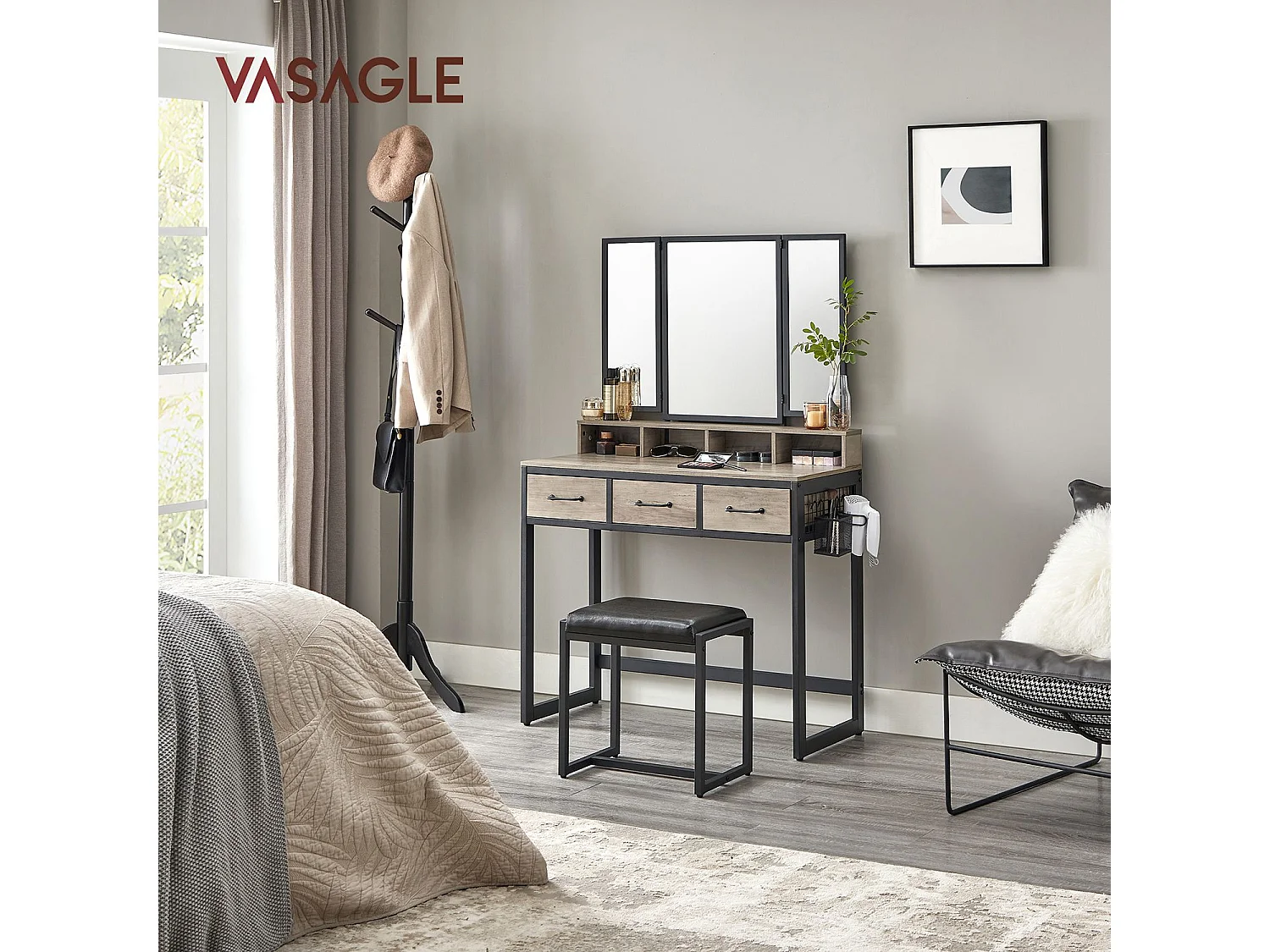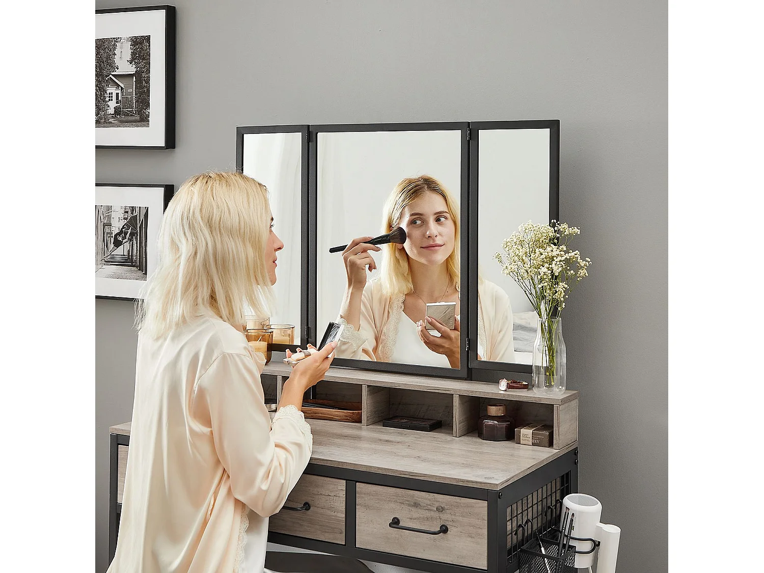 Schminktisch 90x40x140,8 cm schwarz und helles Elfenbein