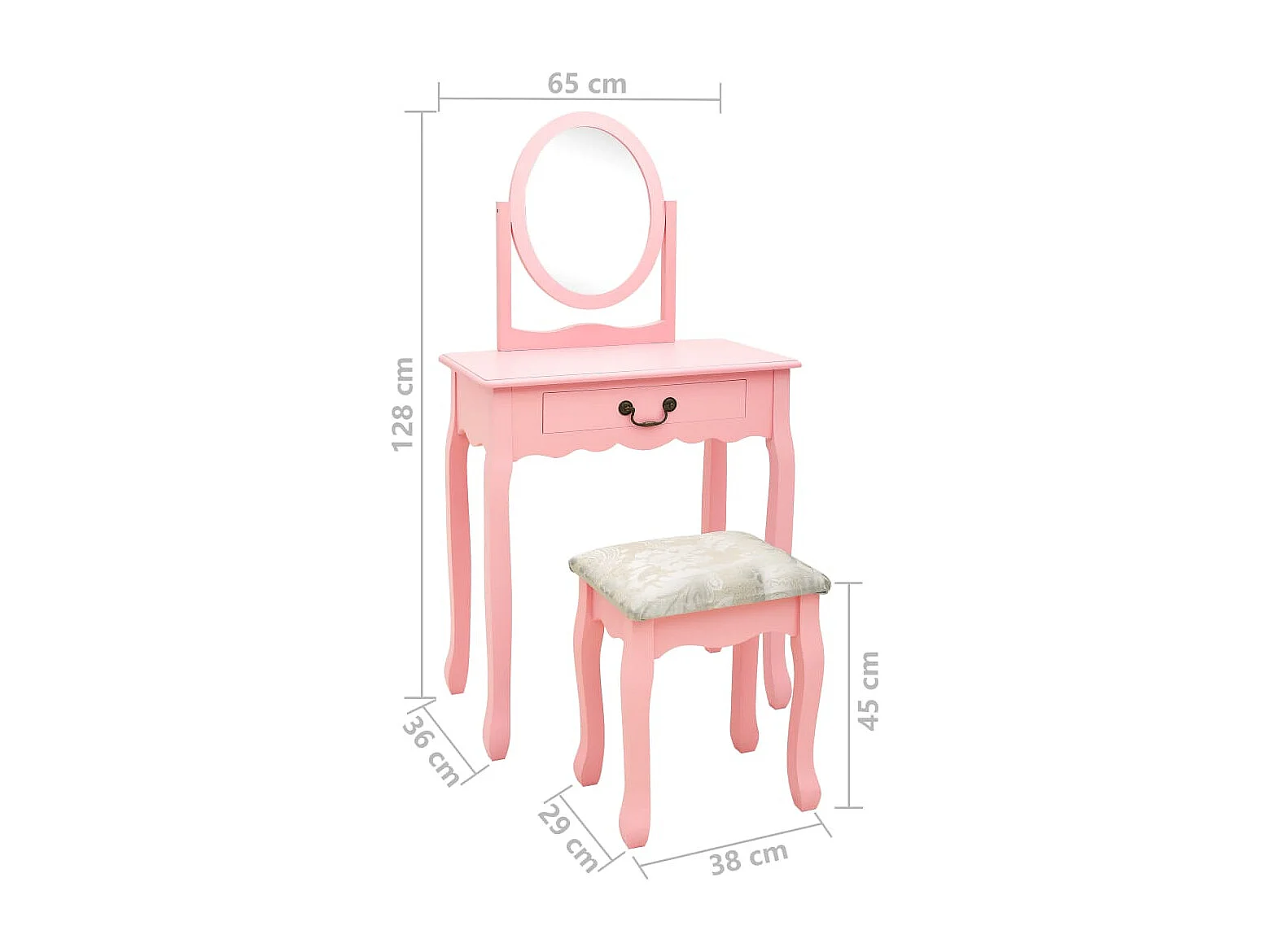 Schminktisch mit Hocker Rosa 65x36x128 cm Paulownia-Holz MDF