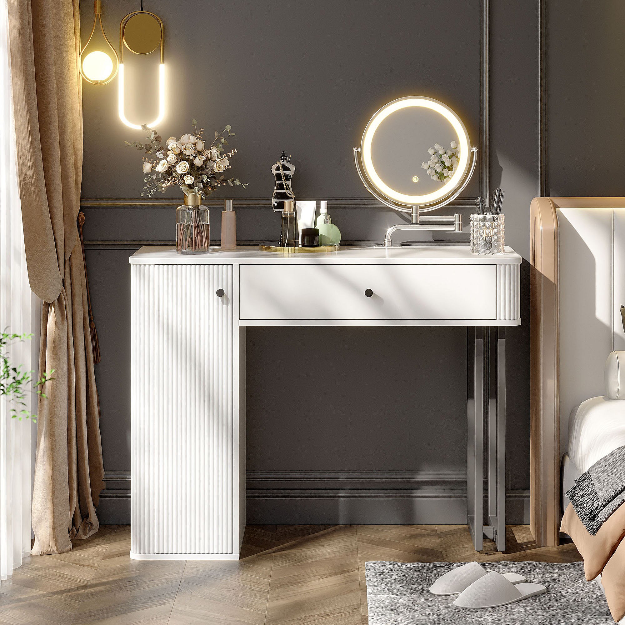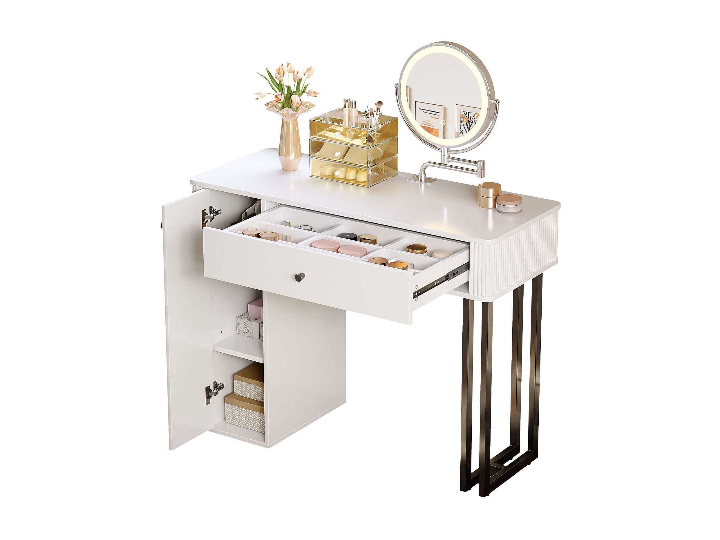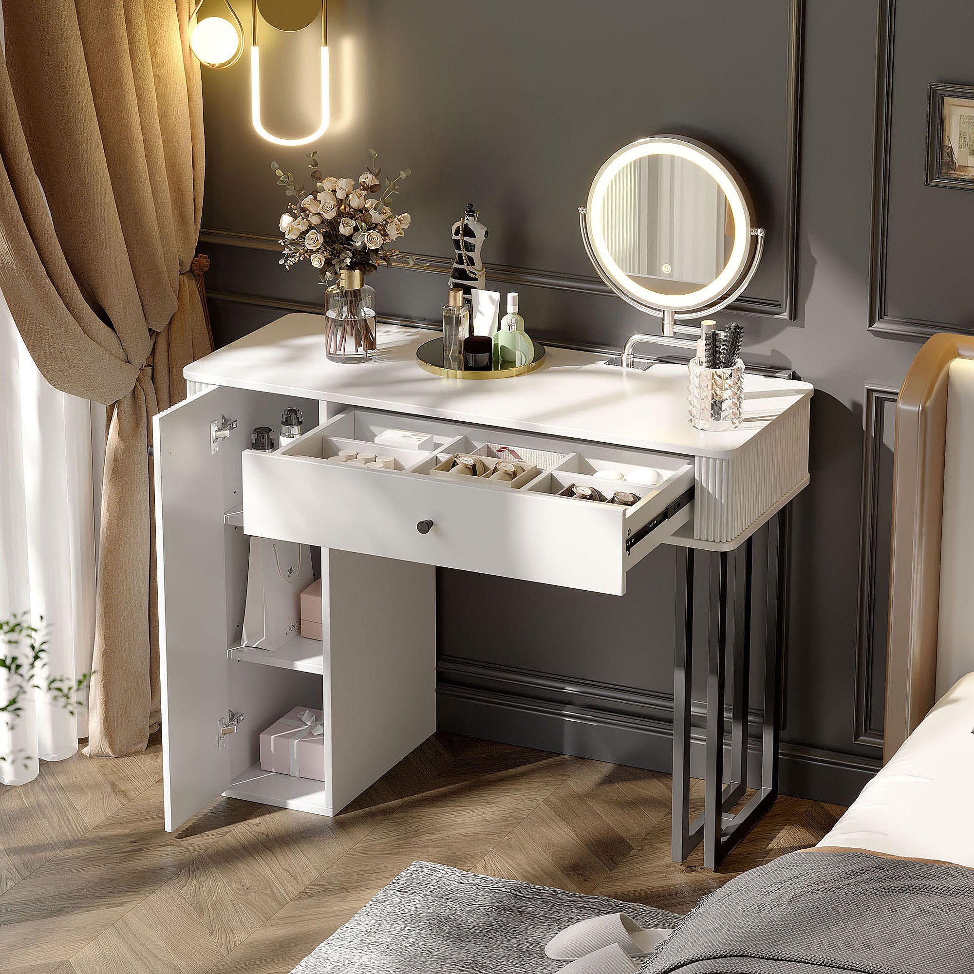 Schminktisch mit Spiegel 100x40x116 cm - mit 3-farbiger LED-Beleuchtung - mit 1 Schublade und 1 Tür - Weiß