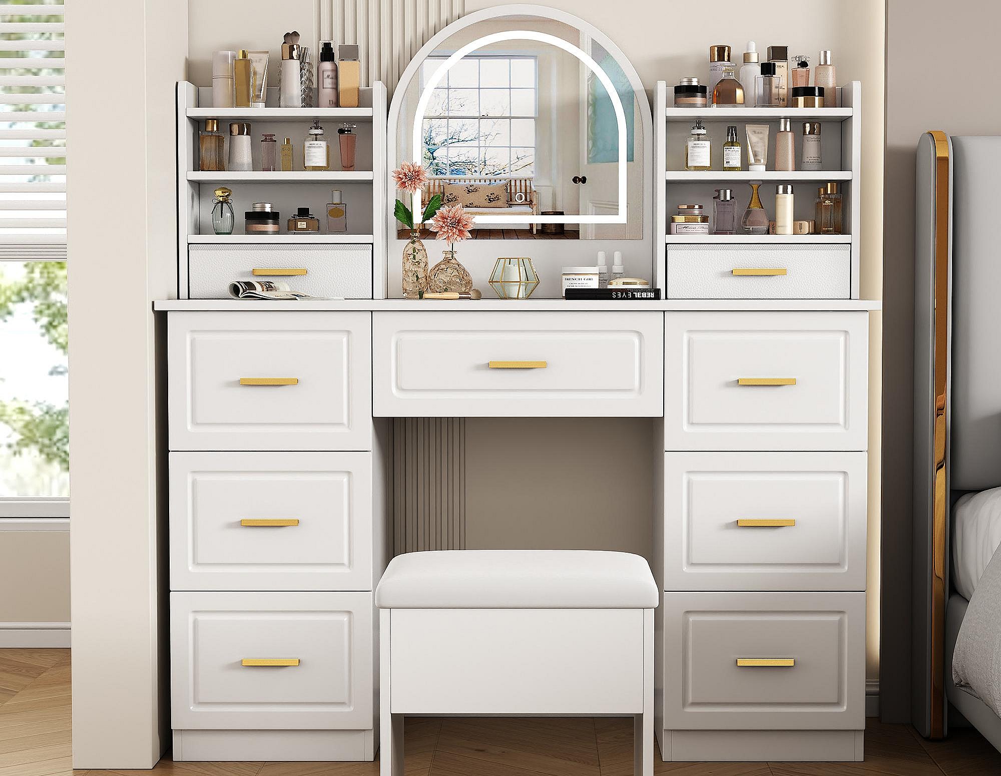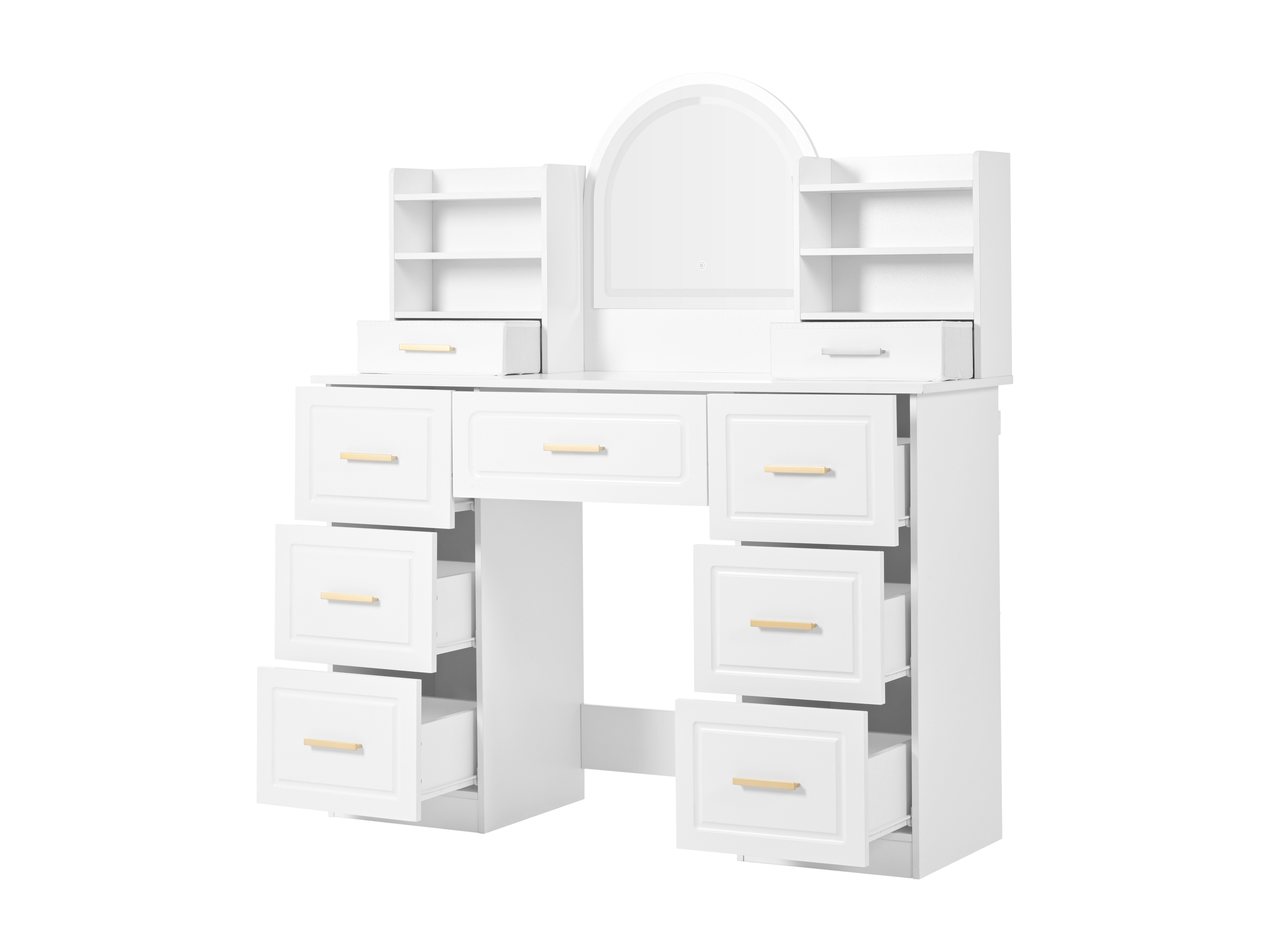 Schminktisch mit LED-Beleuchtung 105x40x80 cm - mit 7 Schubladen - mit Aufbewahrungsfächern - weiß
