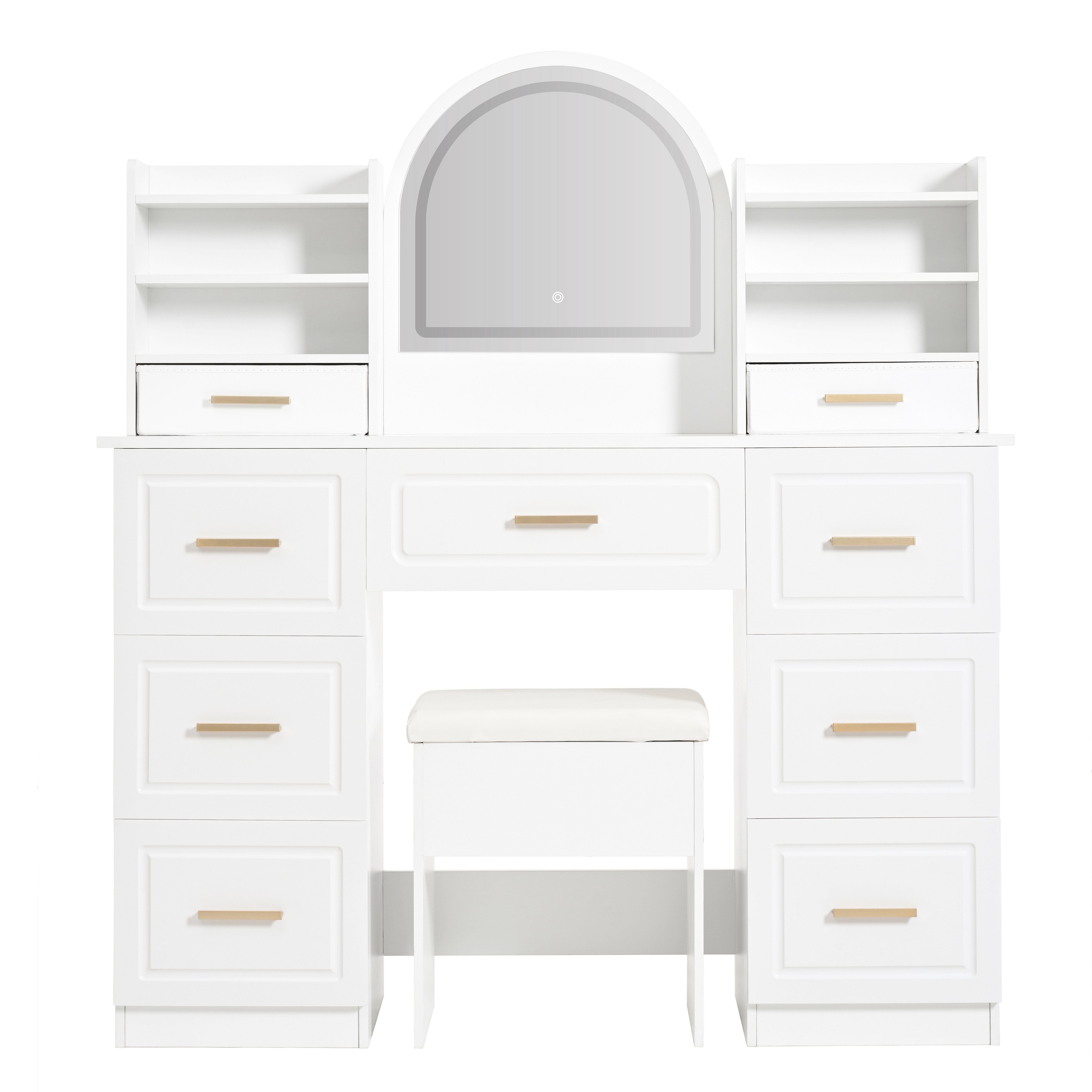 Schminktisch mit Spiegel 120x40x135 cm - mit LED-Beleuchtung - mit 9 Schubladen - weiß