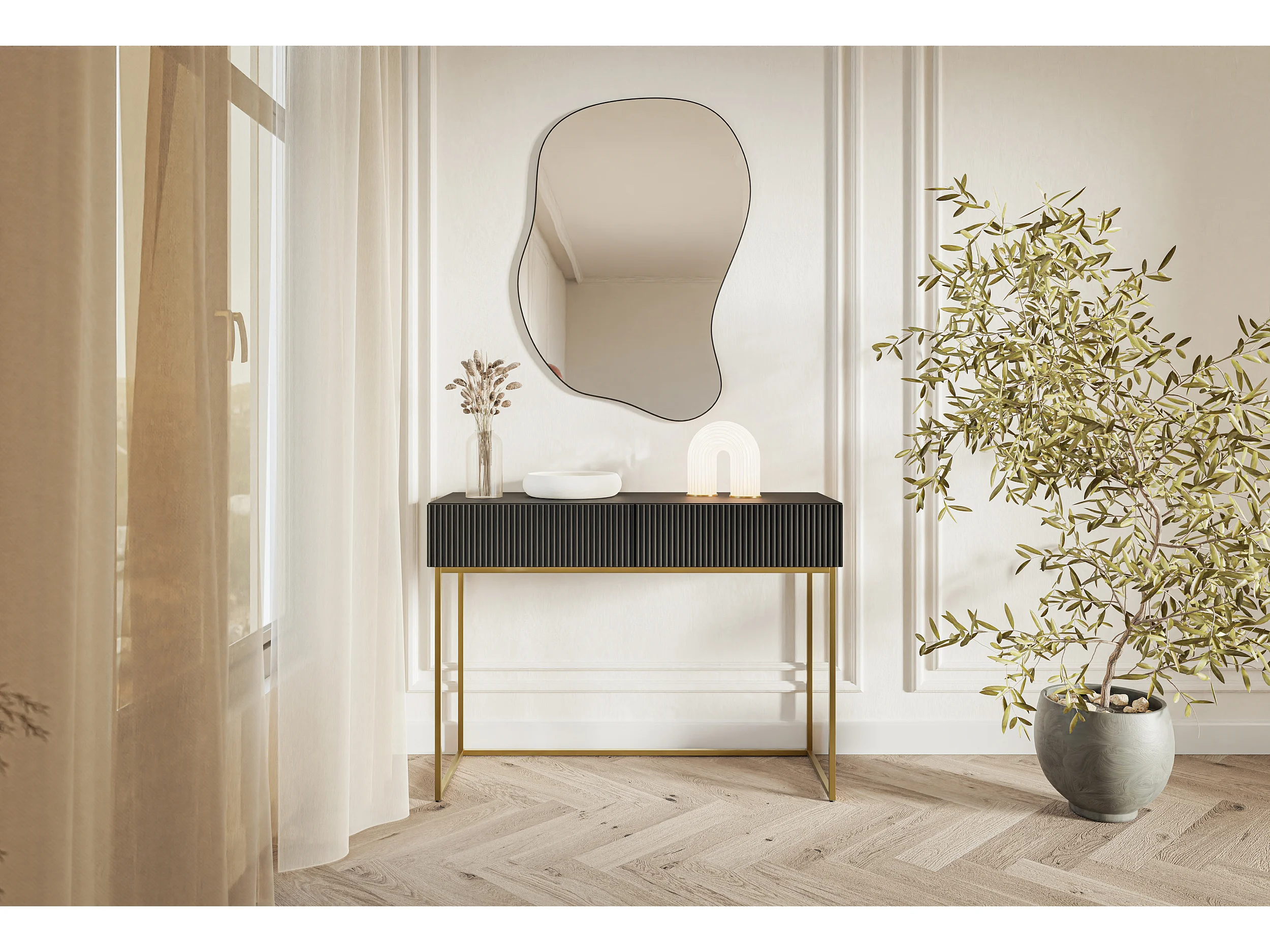 Schminktisch - 110 cm - schwarz mit goldenen Beinen - VELDIO