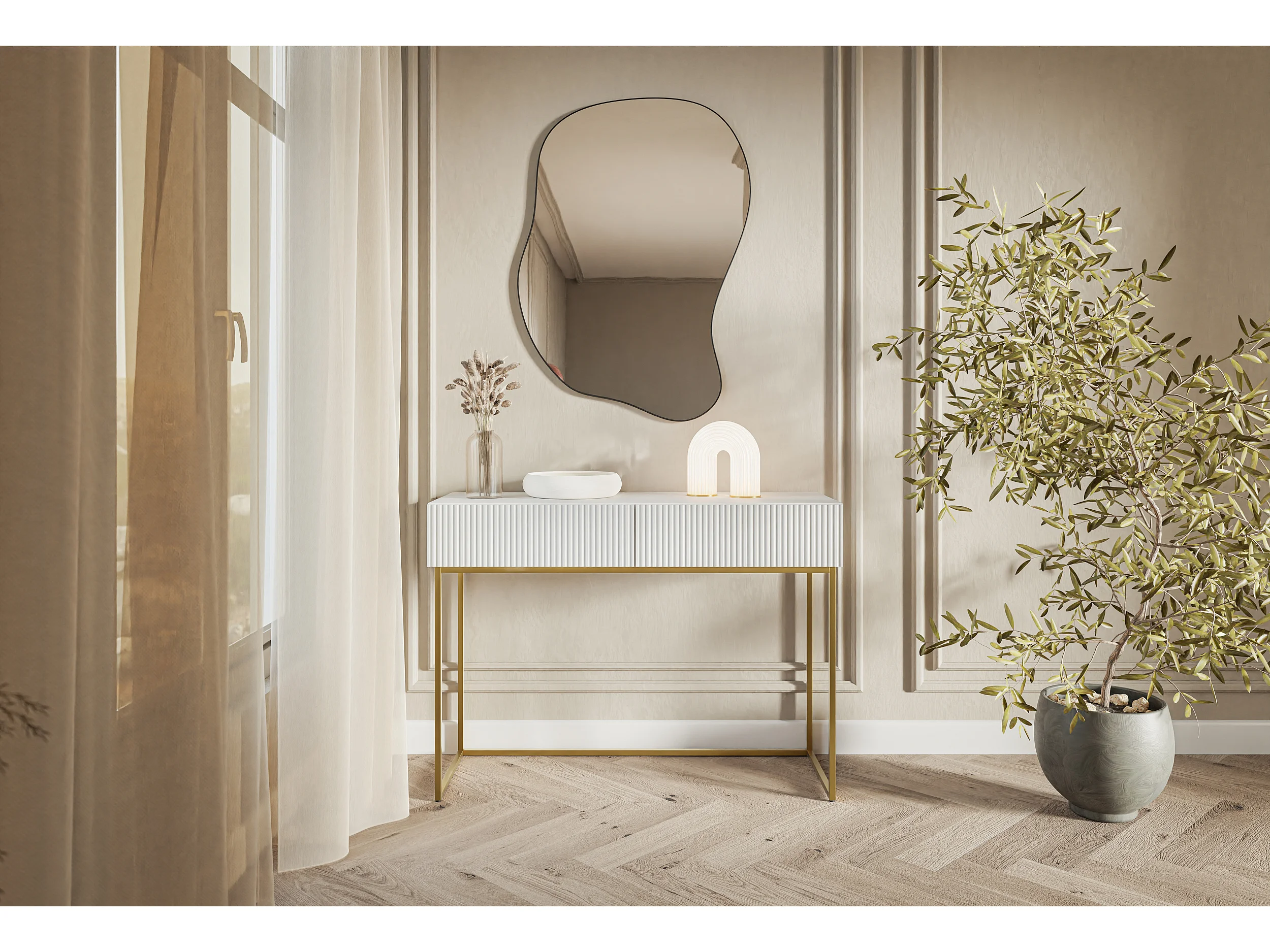 Schminktisch - 110 cm - weiß mit goldenen Beinen - VELDIO