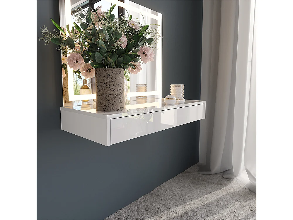 Schminktisch weiß/weiß hochglanz 80x50.1x76 sherry