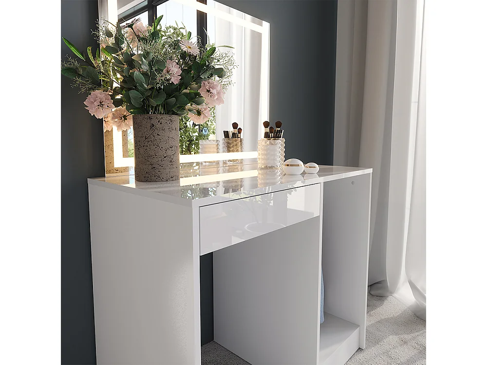 Schminktisch weiß/weiß hochglanz 89.8x50.1x76 sherry