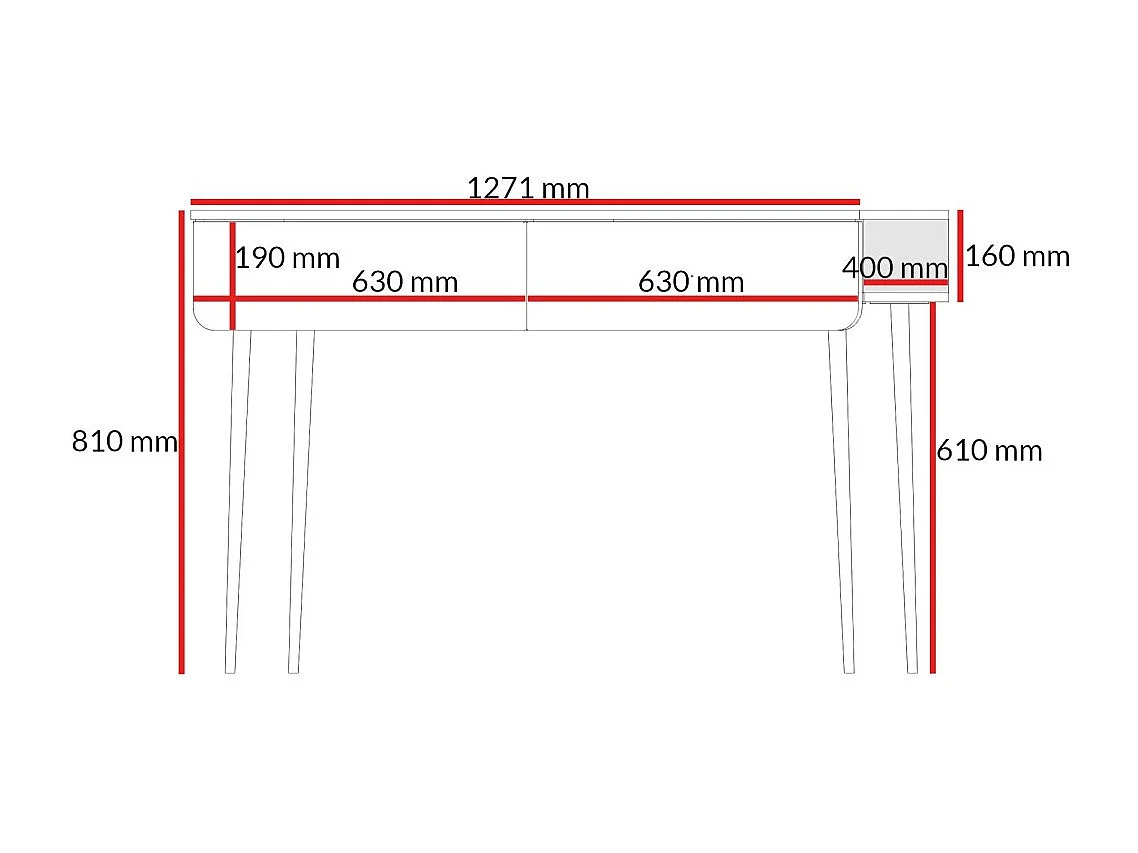 Schminktische mit Schubladen Chloe 2S 125 Weiß (schwarzer oder golder Griff)