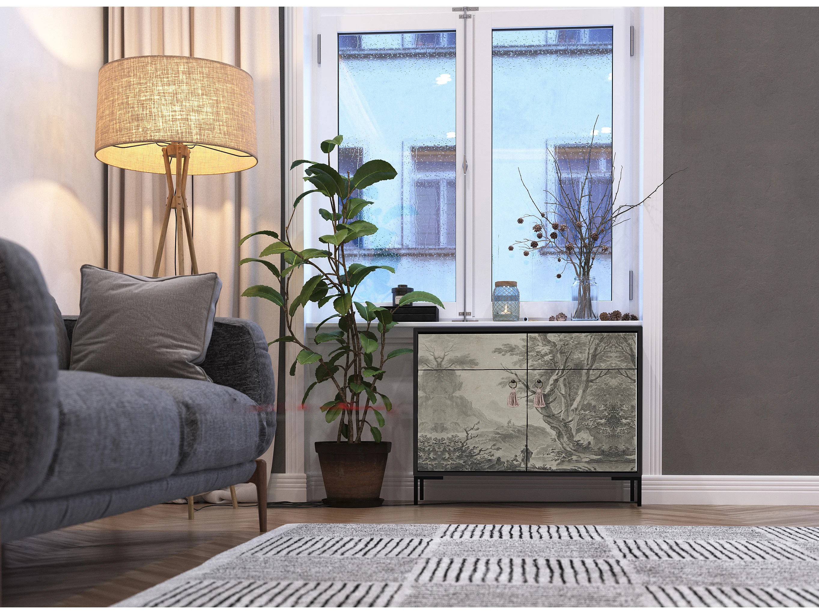 Schrank-Sideboard mit 2 Türen und 2 Schubladen aus MDF