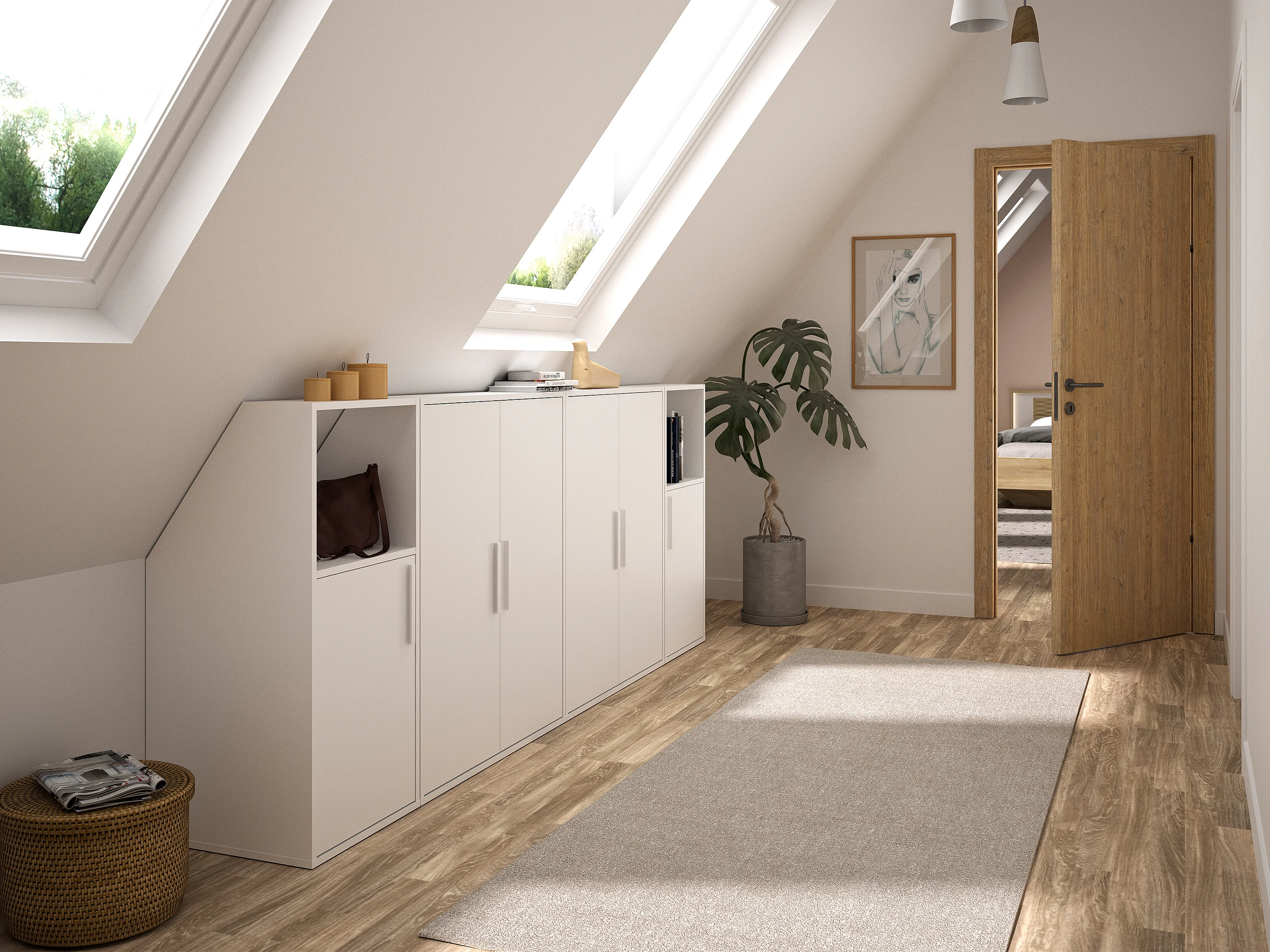 Schrank unter Dachschräge mit 6 Türen & 2 Ablagen - Weiß - ADEZIO