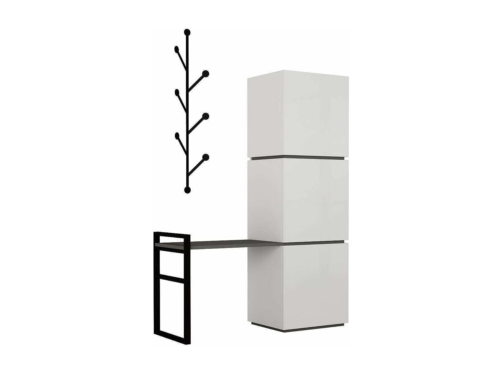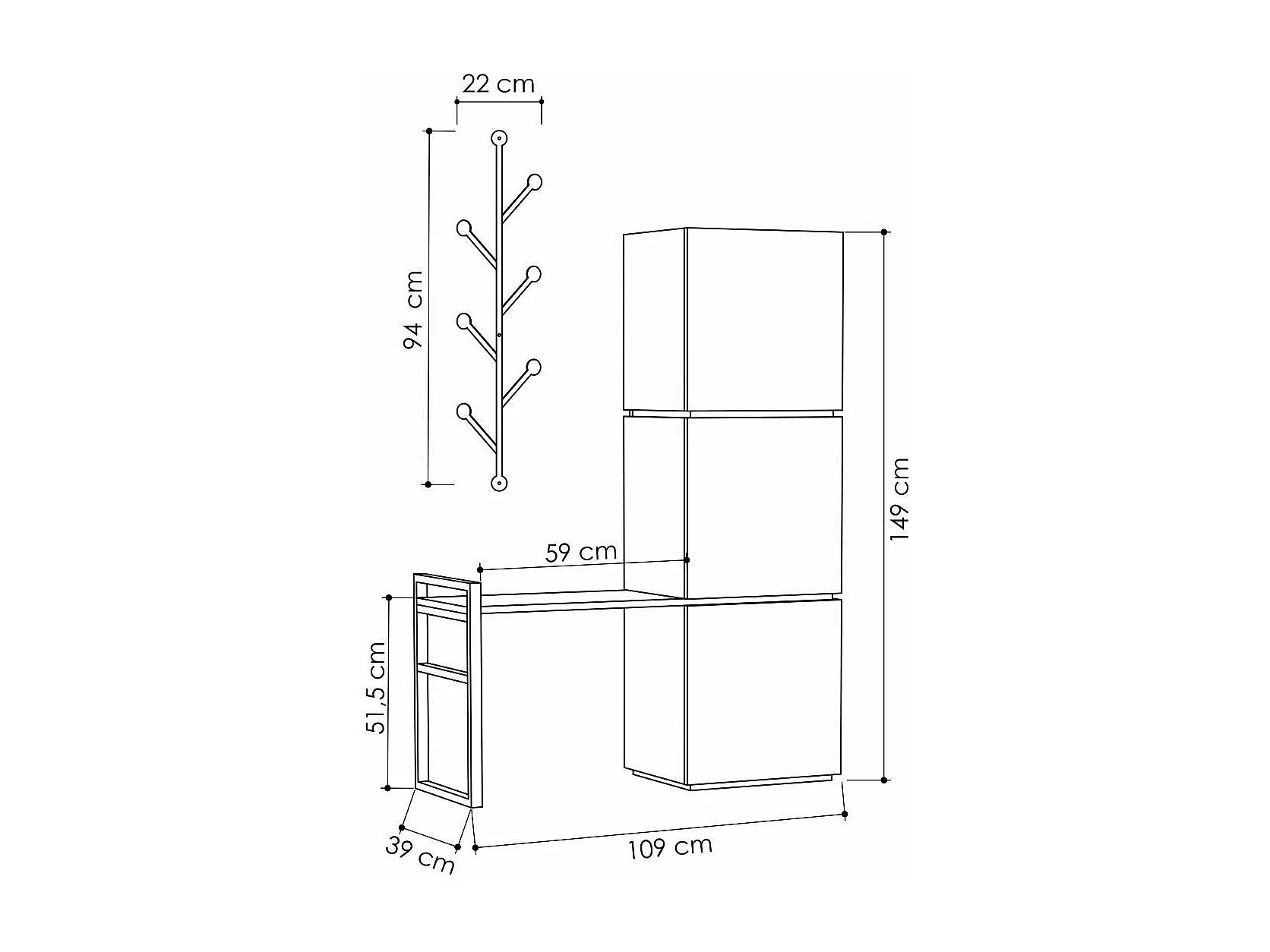 Schuhaufbewahrungsmöbel mit 3 Türen, Bank und Kleiderhaken, H149 cm - Mello