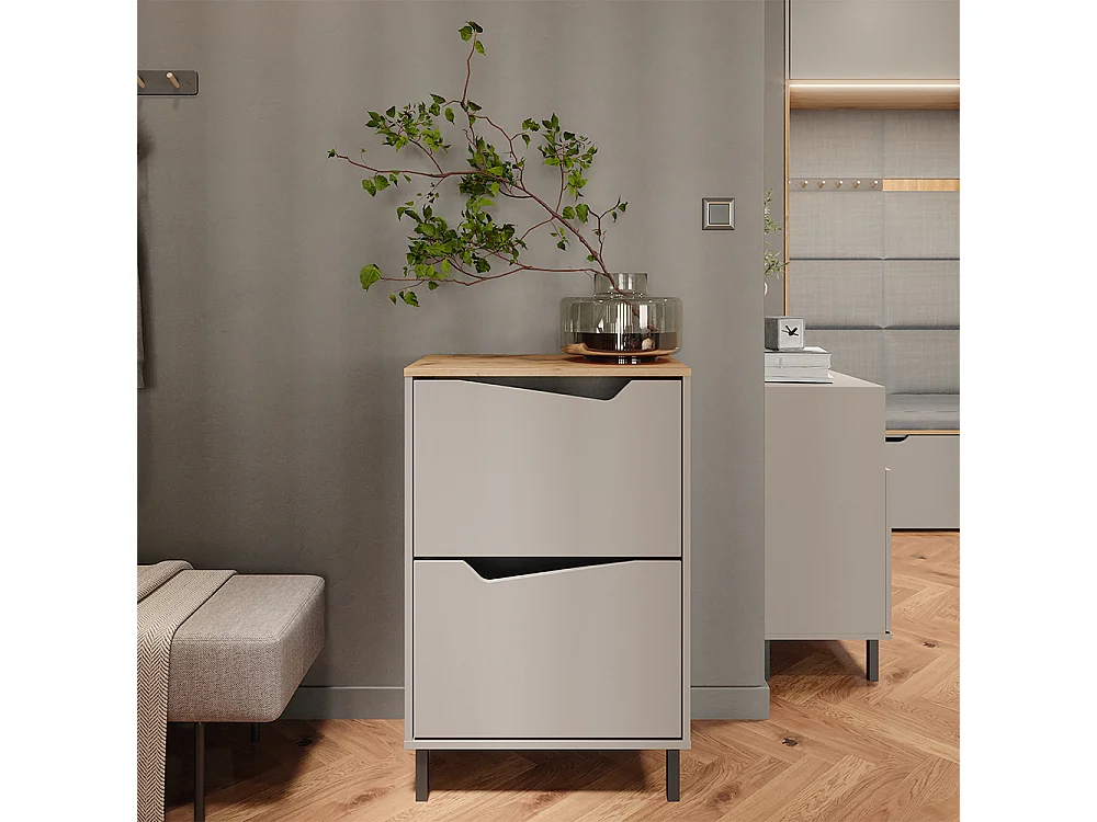 Schuhschrank mit 3 Klappen - Greige mit schwarzem Metallgestell - 50 cm - VELDIO