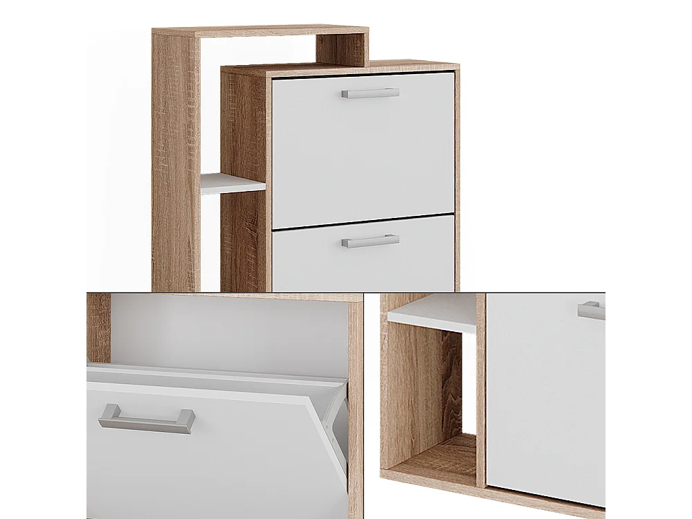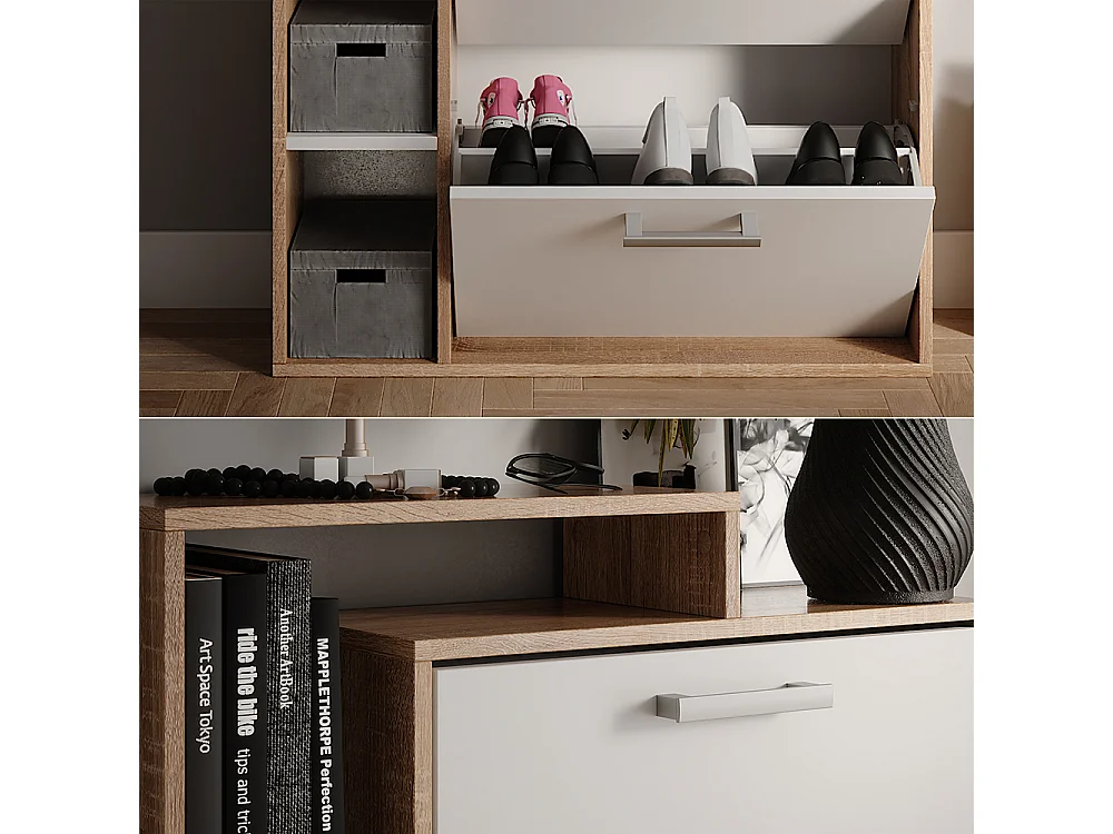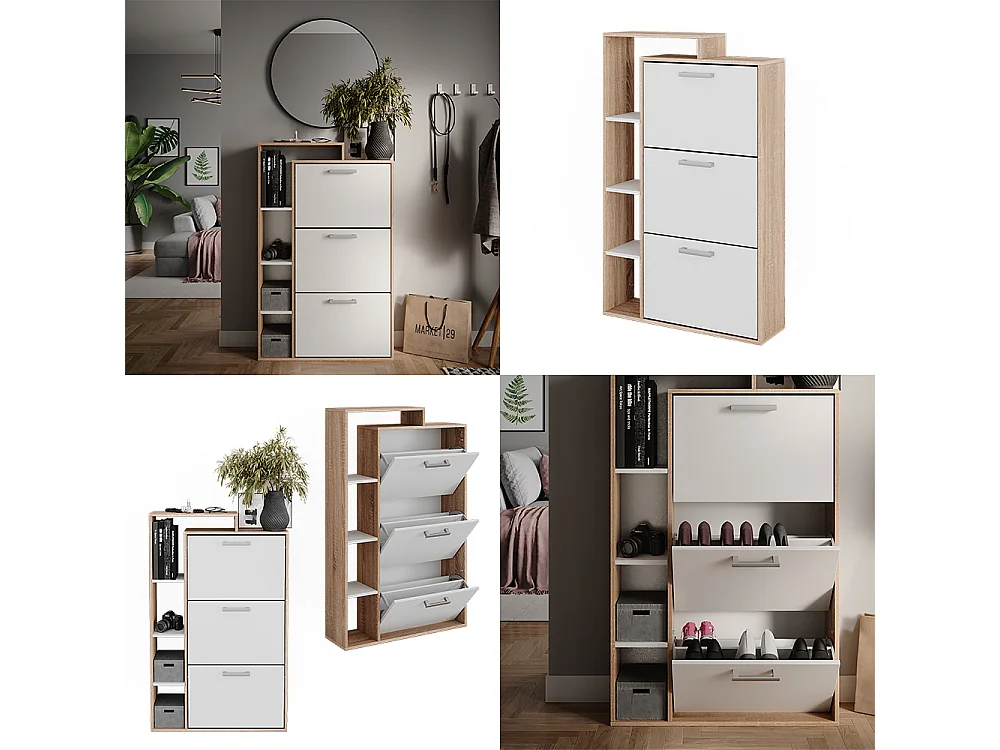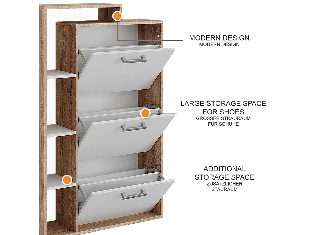 Schuhschrank mit 3 Klappschubladen, freistehend, kippbarer Schuhschrank