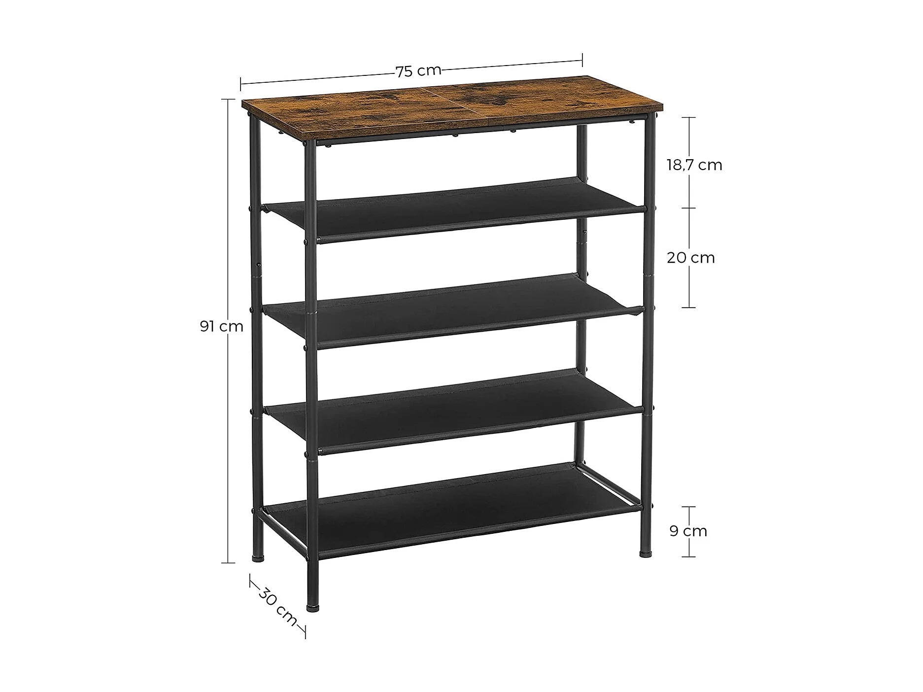Schuhregal 75x30x91 cm schwarz Retro