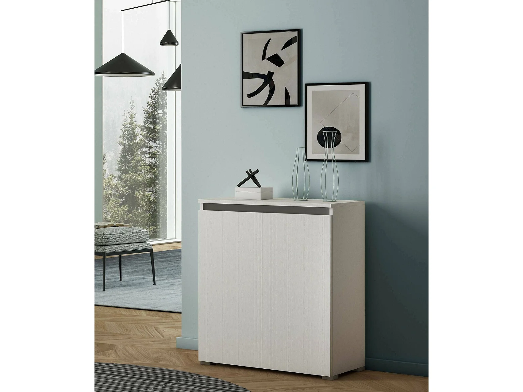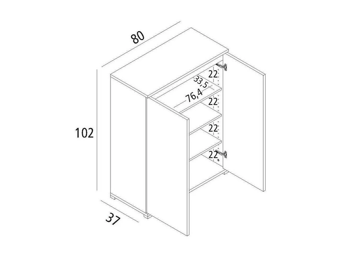 Schuhregal Dballarin, Mehrzweckmöbel, platzsparendes Schuhregal mit 2 Türen, Aufbewahrungsschrank mit Regalen, 100 % Made in Italy, 80 x 37 x 102 cm, Weiß