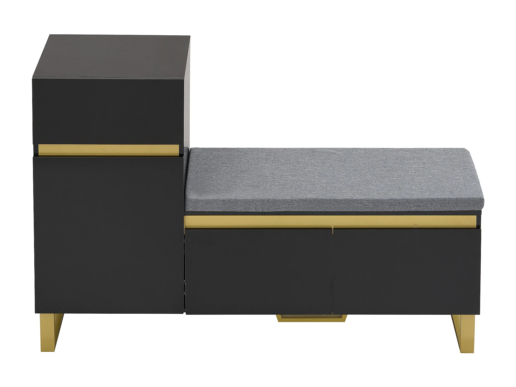 Moderne Schuhbank mit 3 Türen und Kissen – Beine und Griffe aus Metall – Farbe Schwarz – 100 x 34 x 69 cm