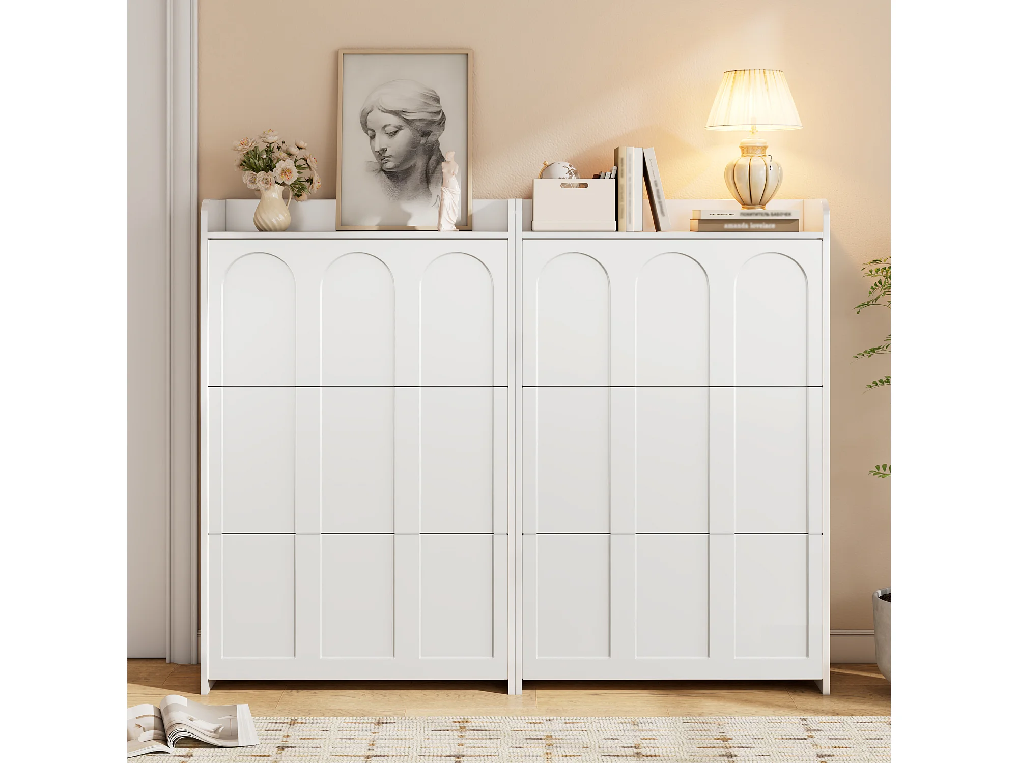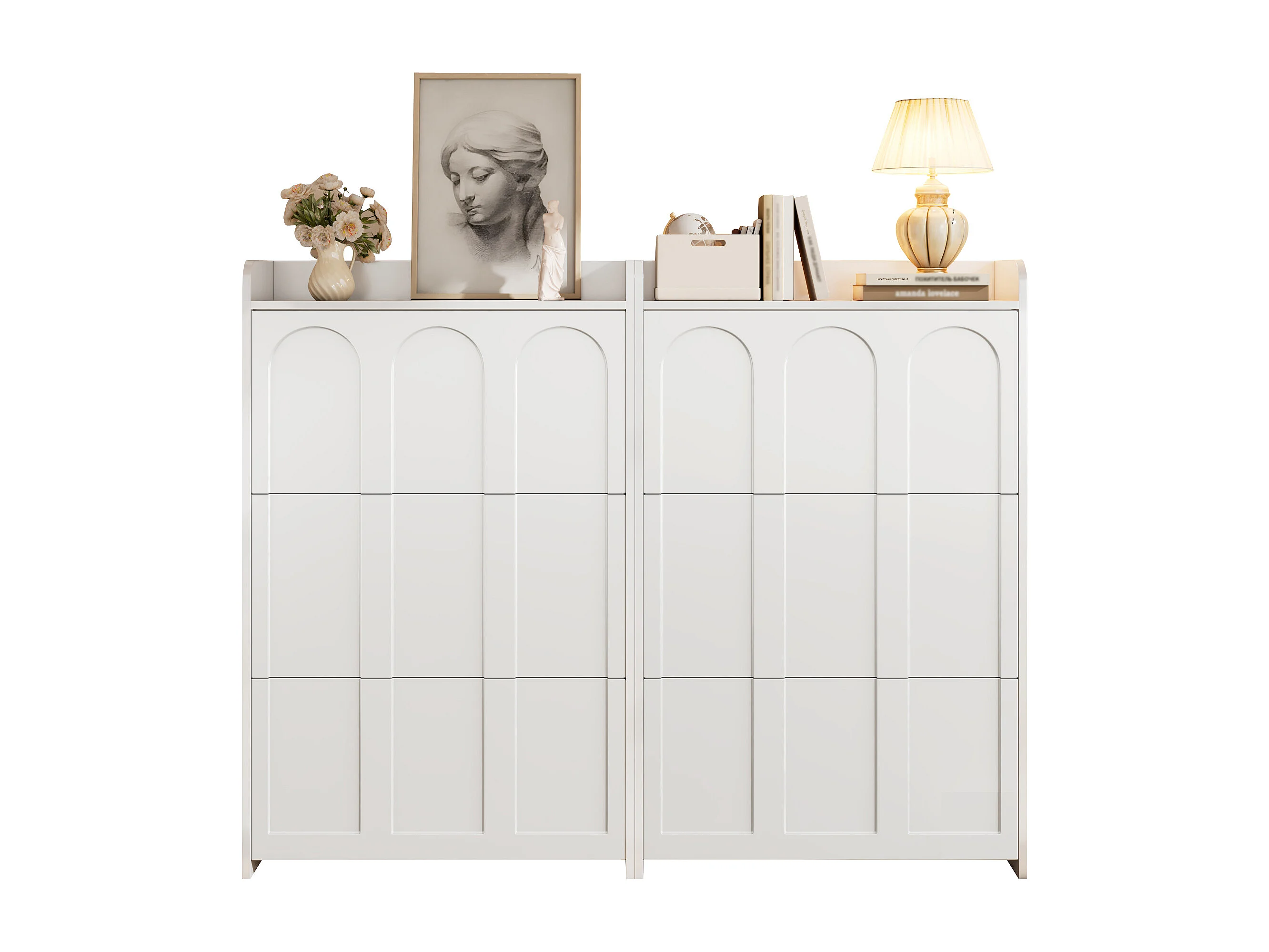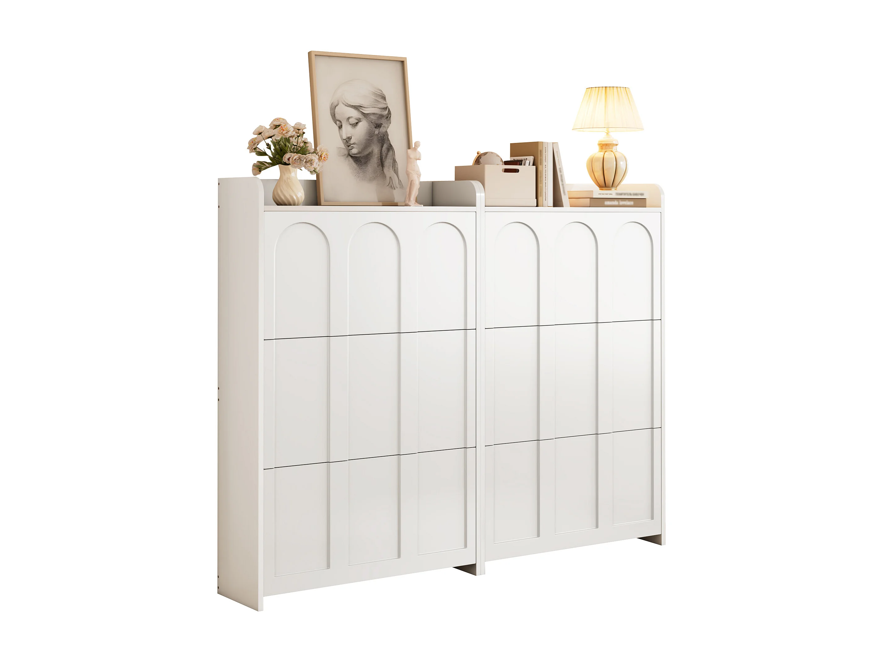 Schuhschrank 2-teilig - 140x25x120 cm - mit 12 Fächern - 6 Klapptüren - MDF - Weiß