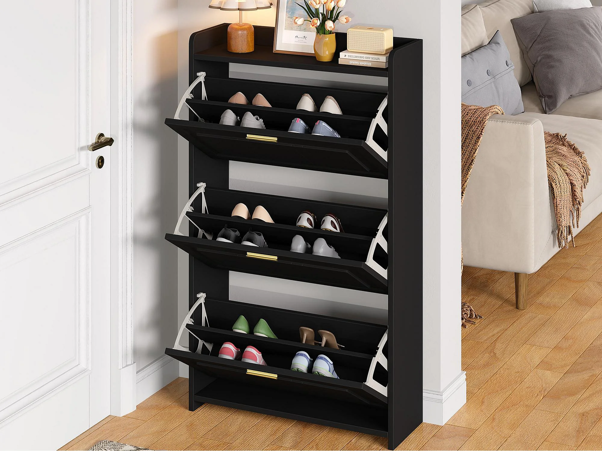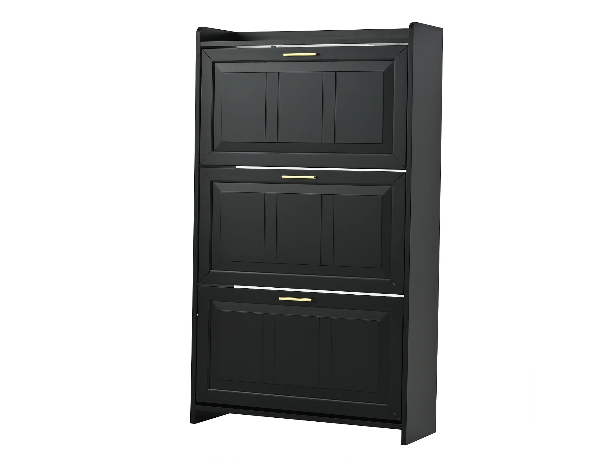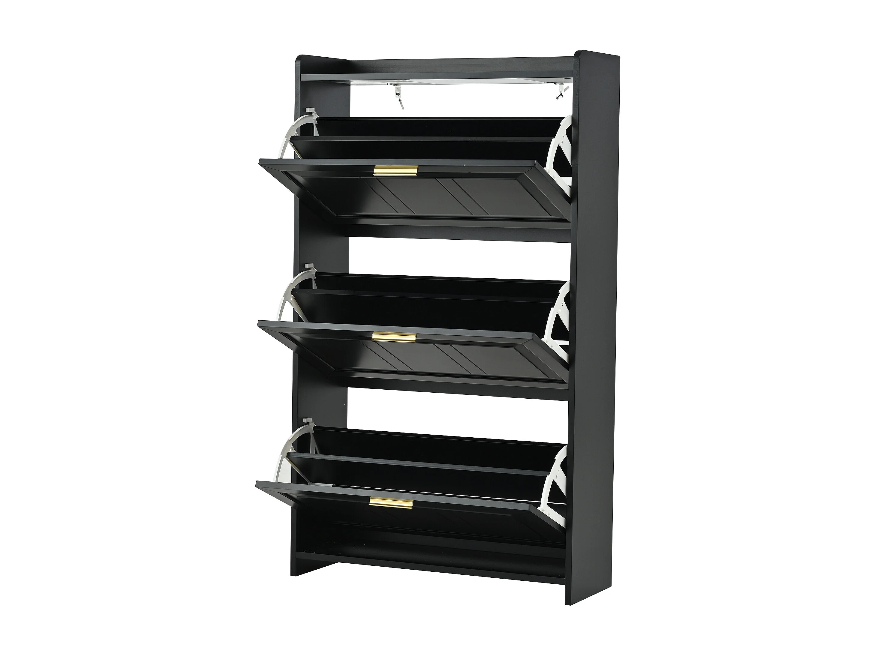 Schuhschrank 70x24x120 cm - 3 Klapptüren - 6 Fächer - MDF und Spanplatten - Schwarz