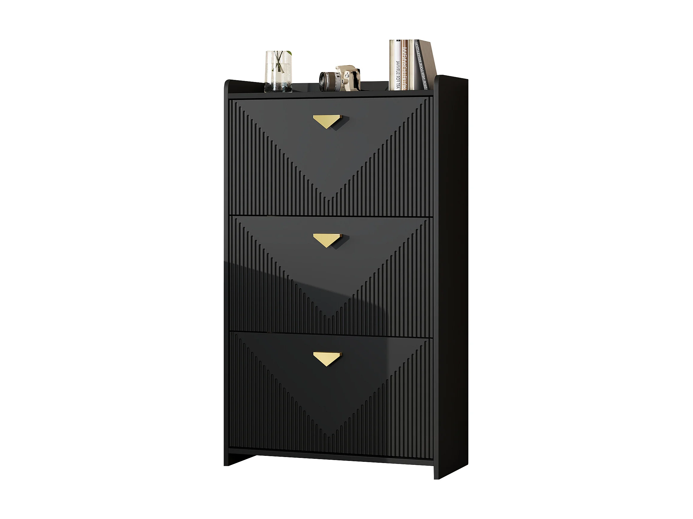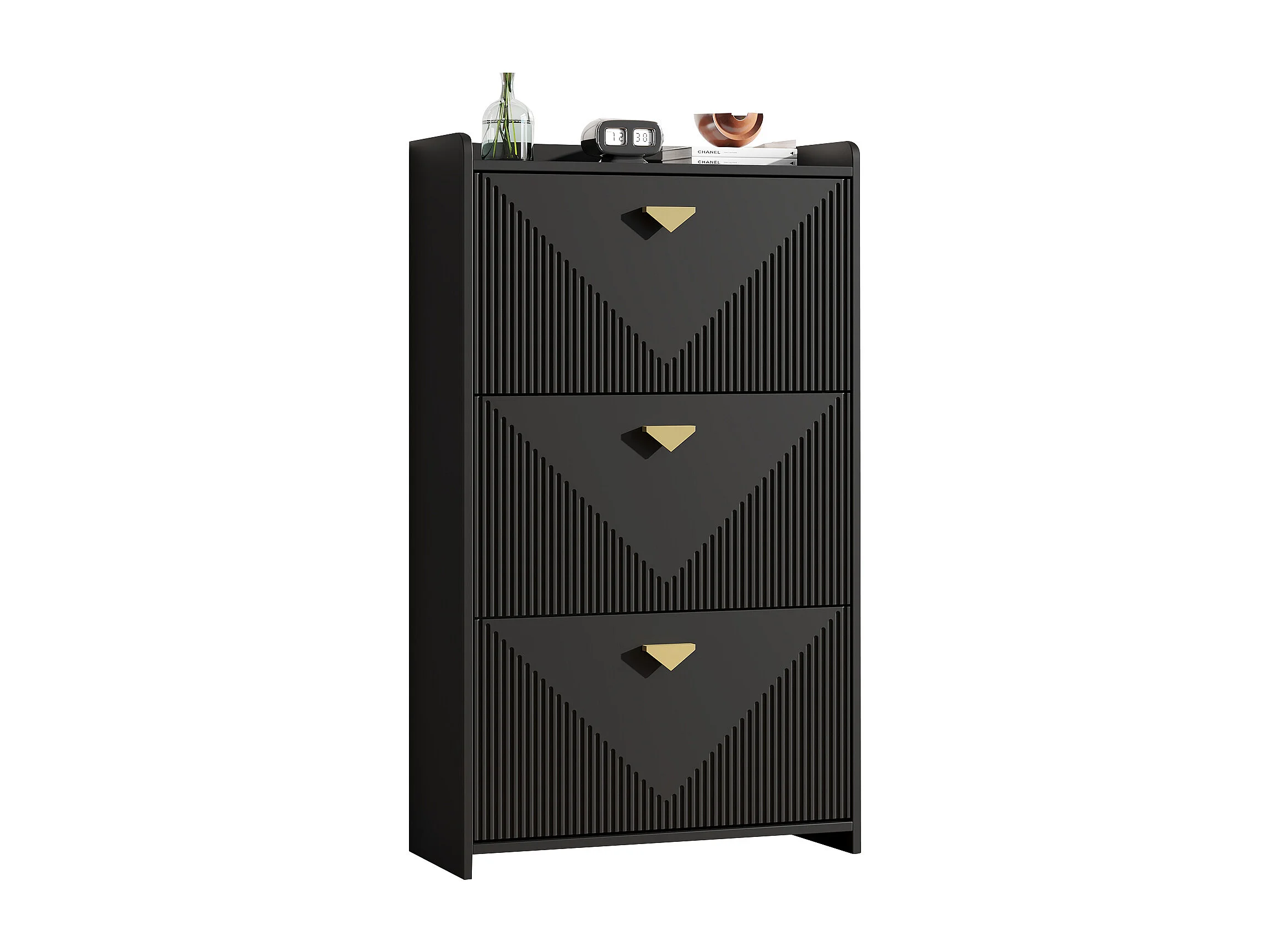 Schuhschrank 70x30x120 cm - 3 Klapptüren - 6 Staufächer - MDF - Schwarz