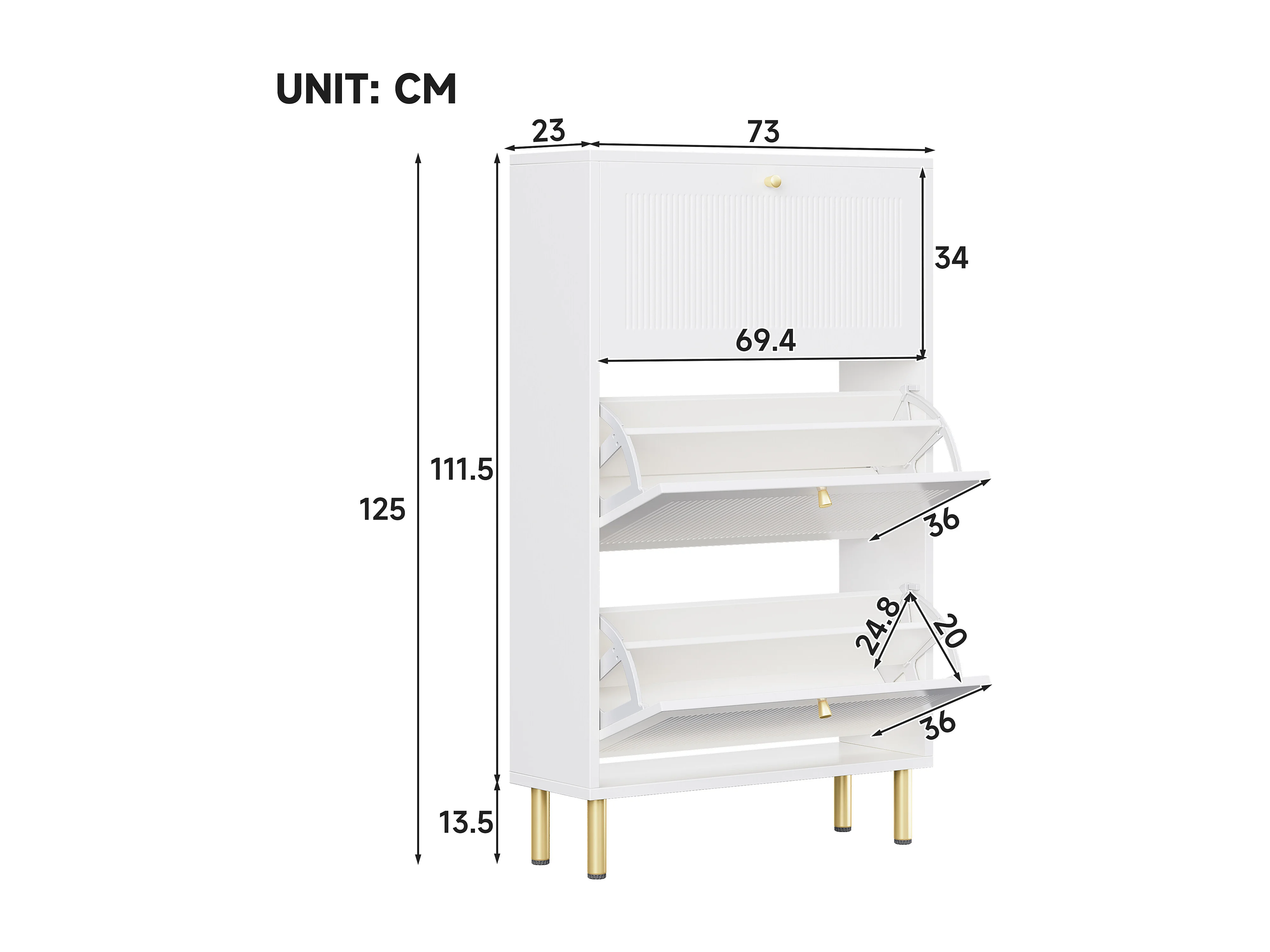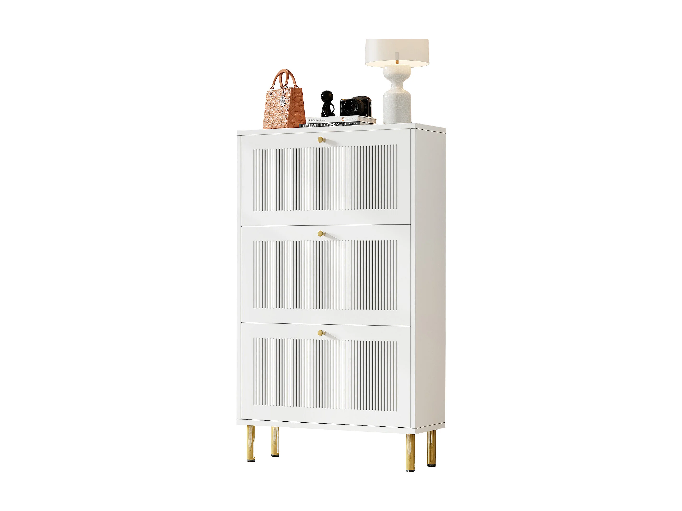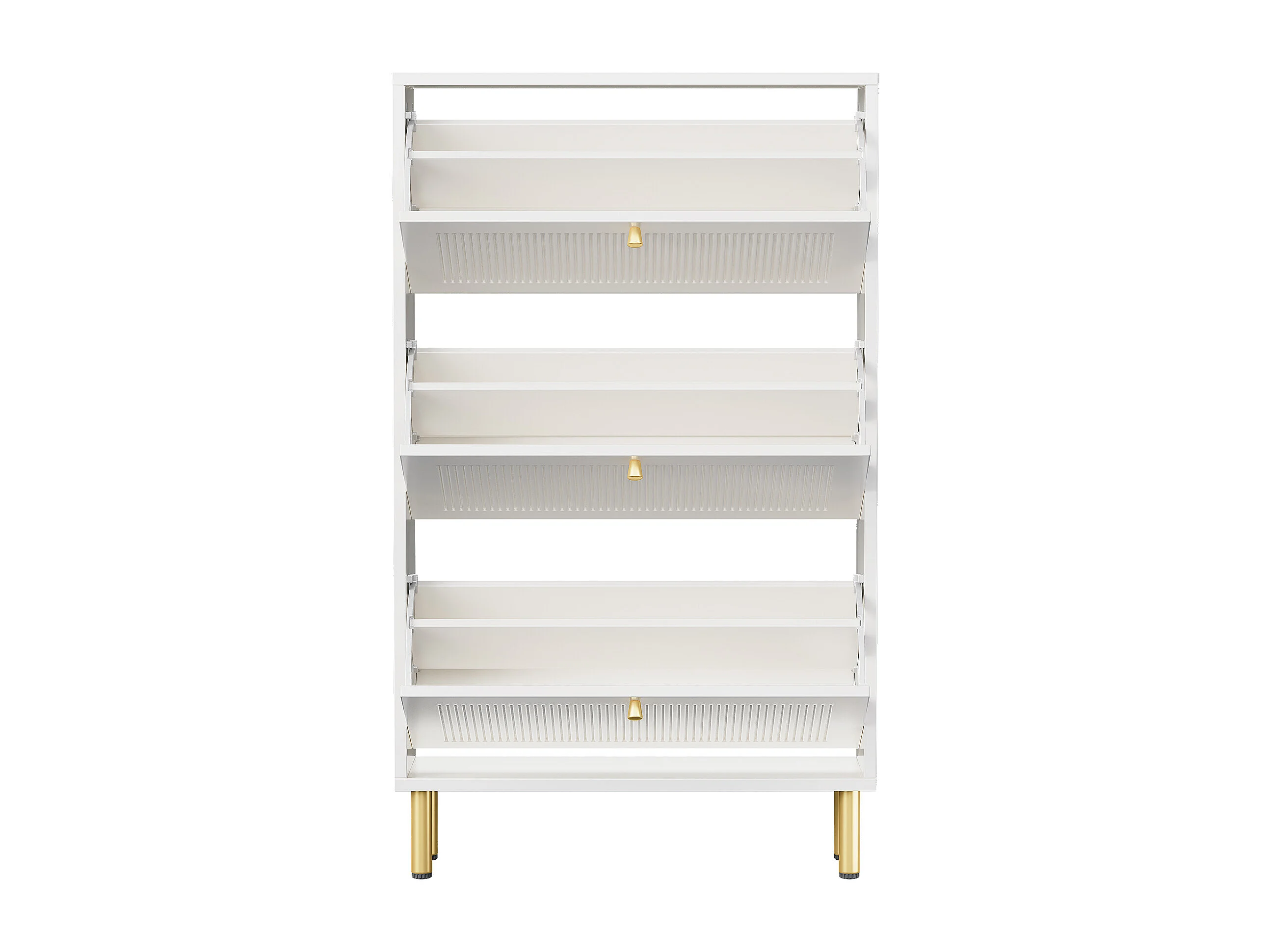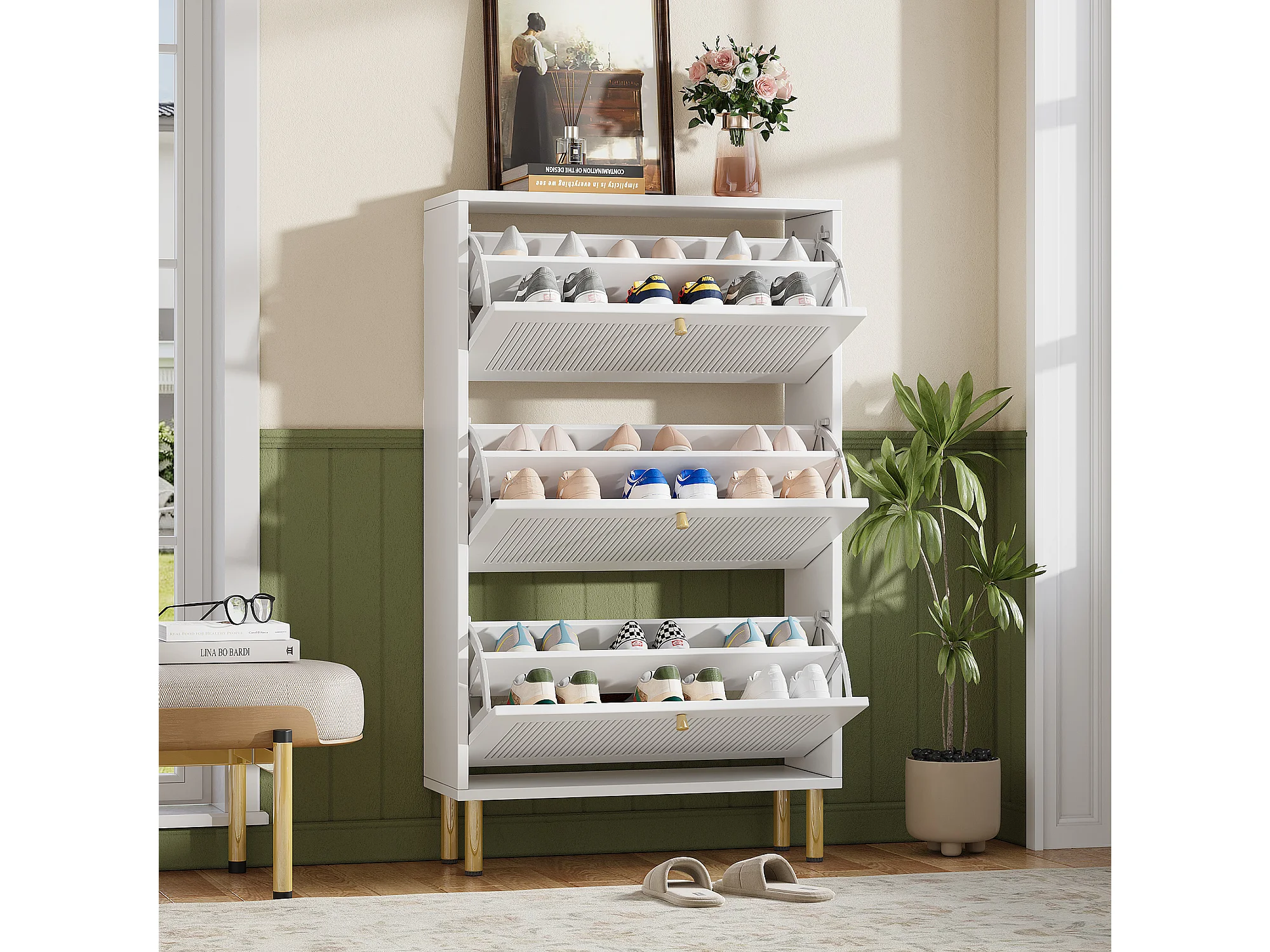 Schuhschrank 73x25x125cm - mit 3 Klapptüren - 6-stufiges Regal - Weiß