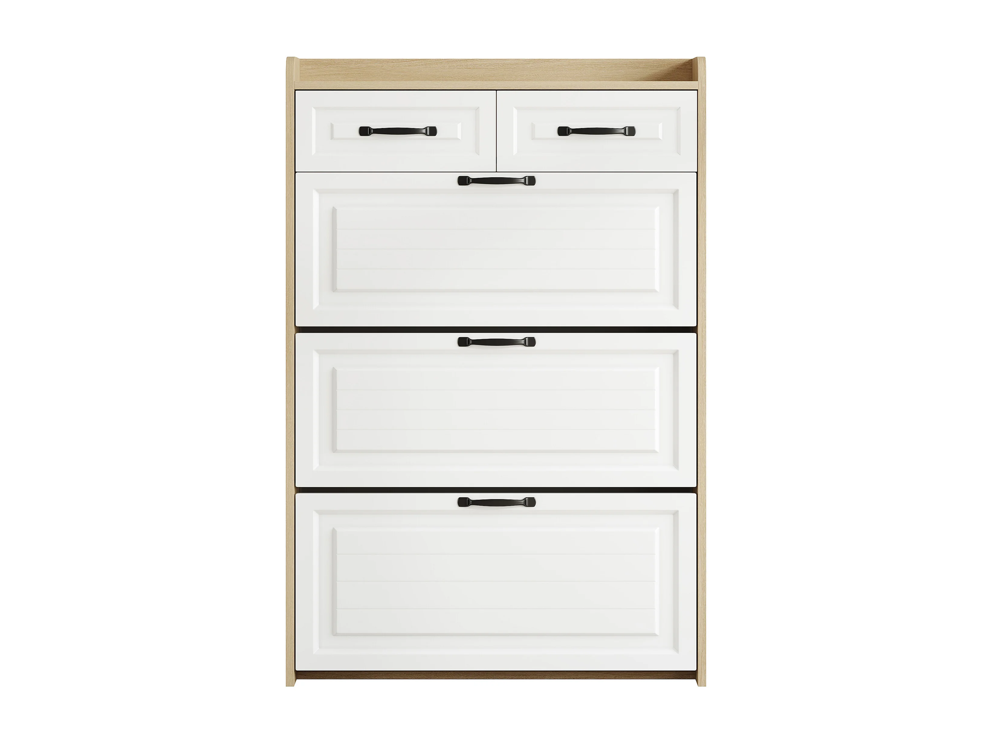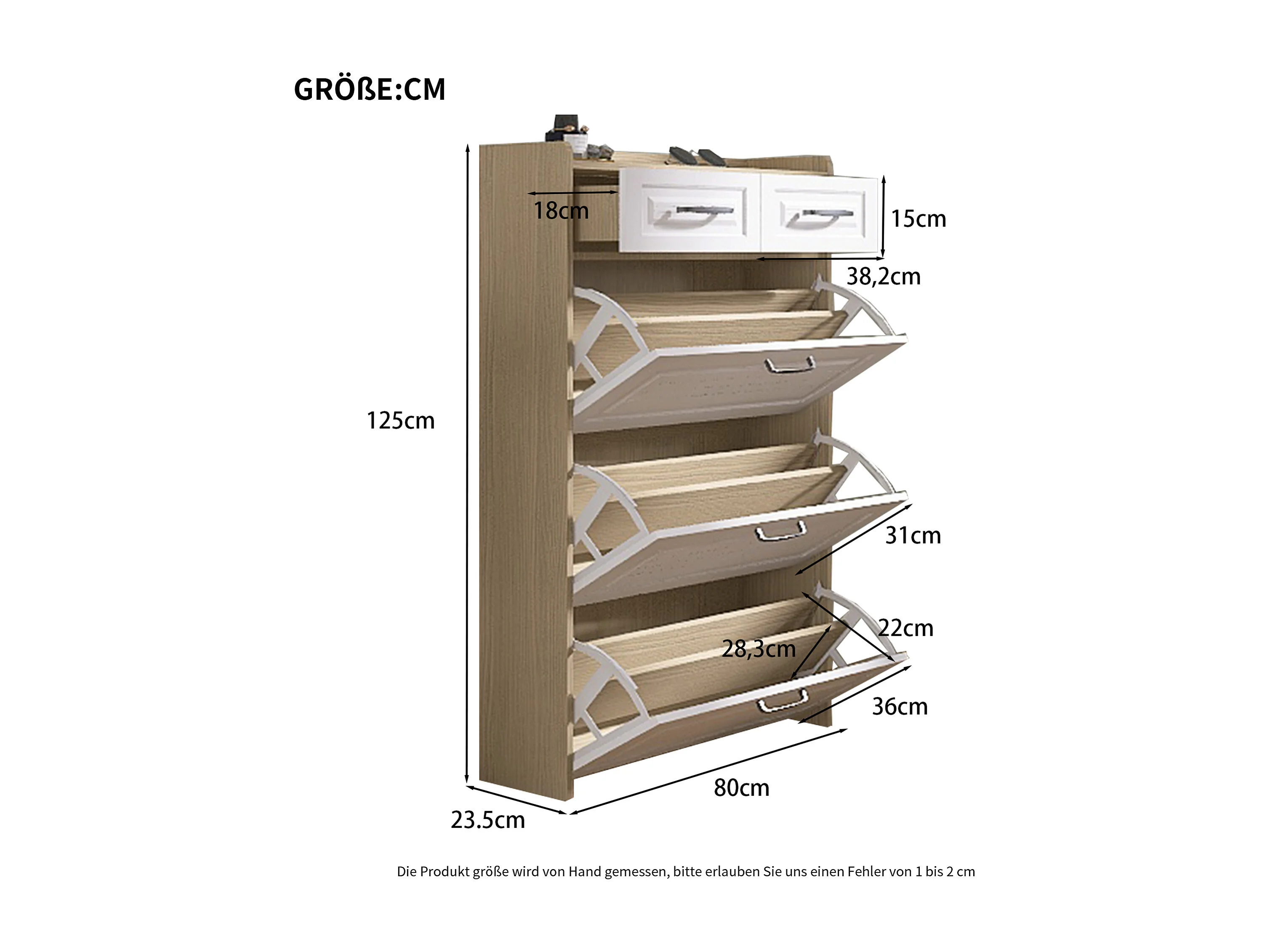 Schuhschrank 80x23.5x125 cm - mit drei großen Klappen - mit 2 Schubladen - weiß + natur