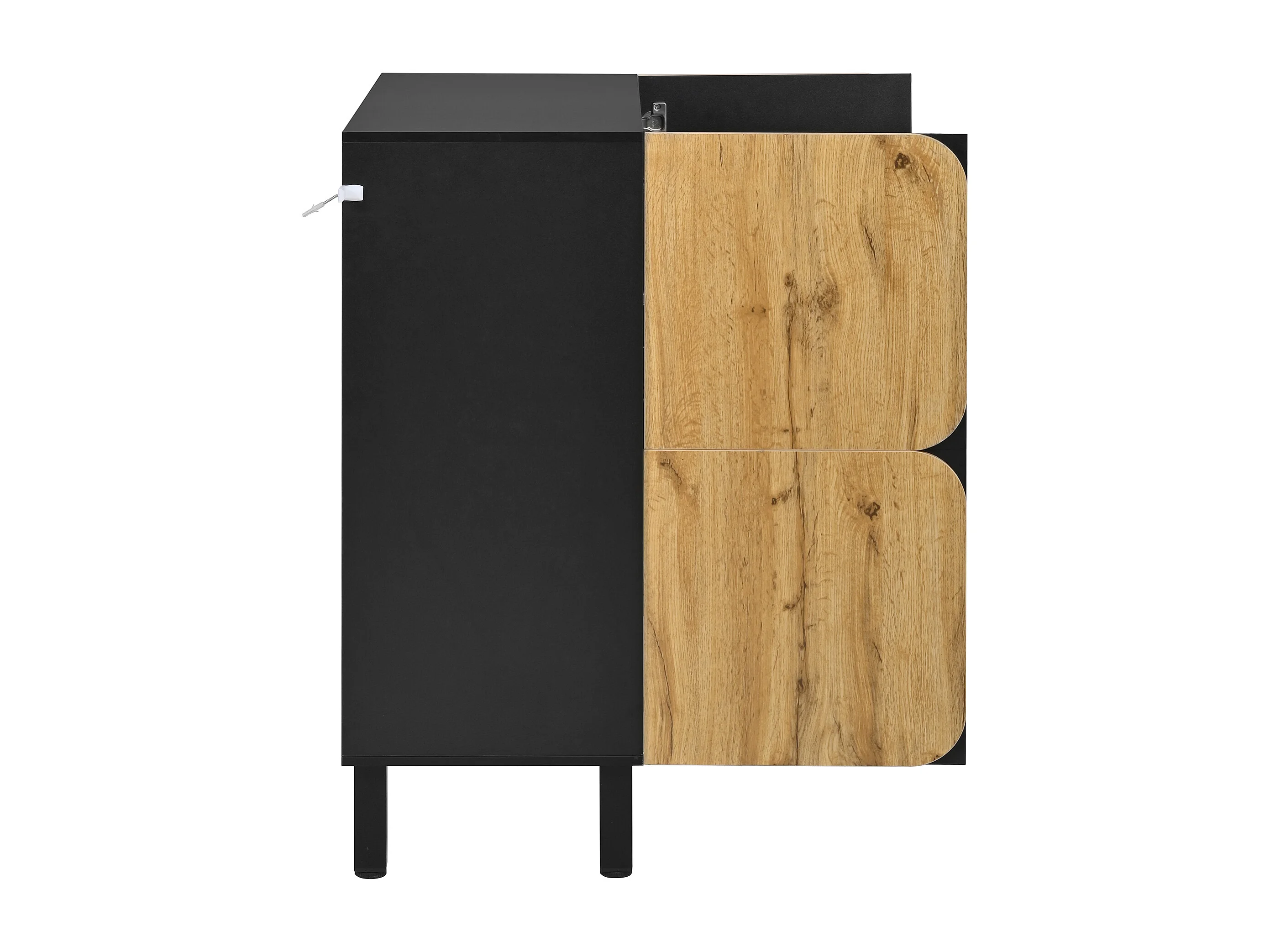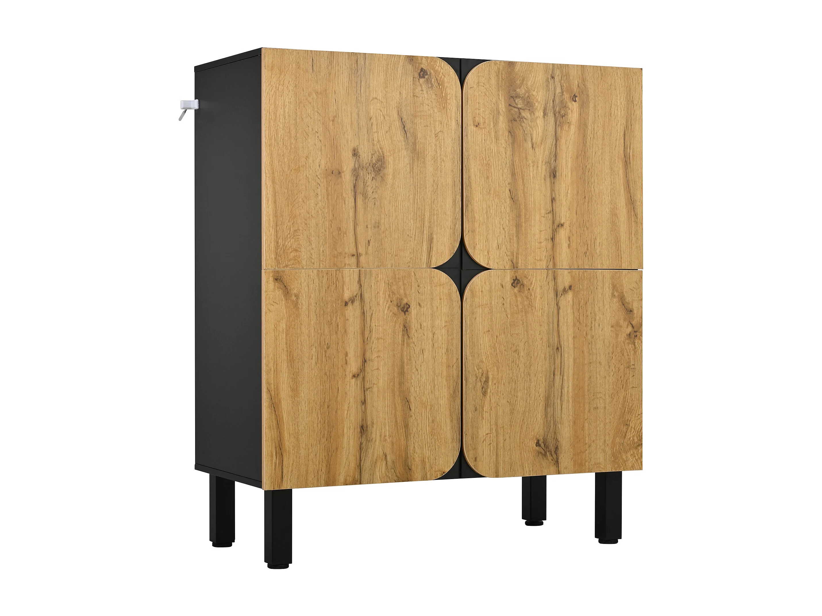 Schuhschrank 80x38,5x95 cm - mit 4 Türen - Höhenverstellbare Regale - Füße aus schwarzem Eisen - Natur und schwarz