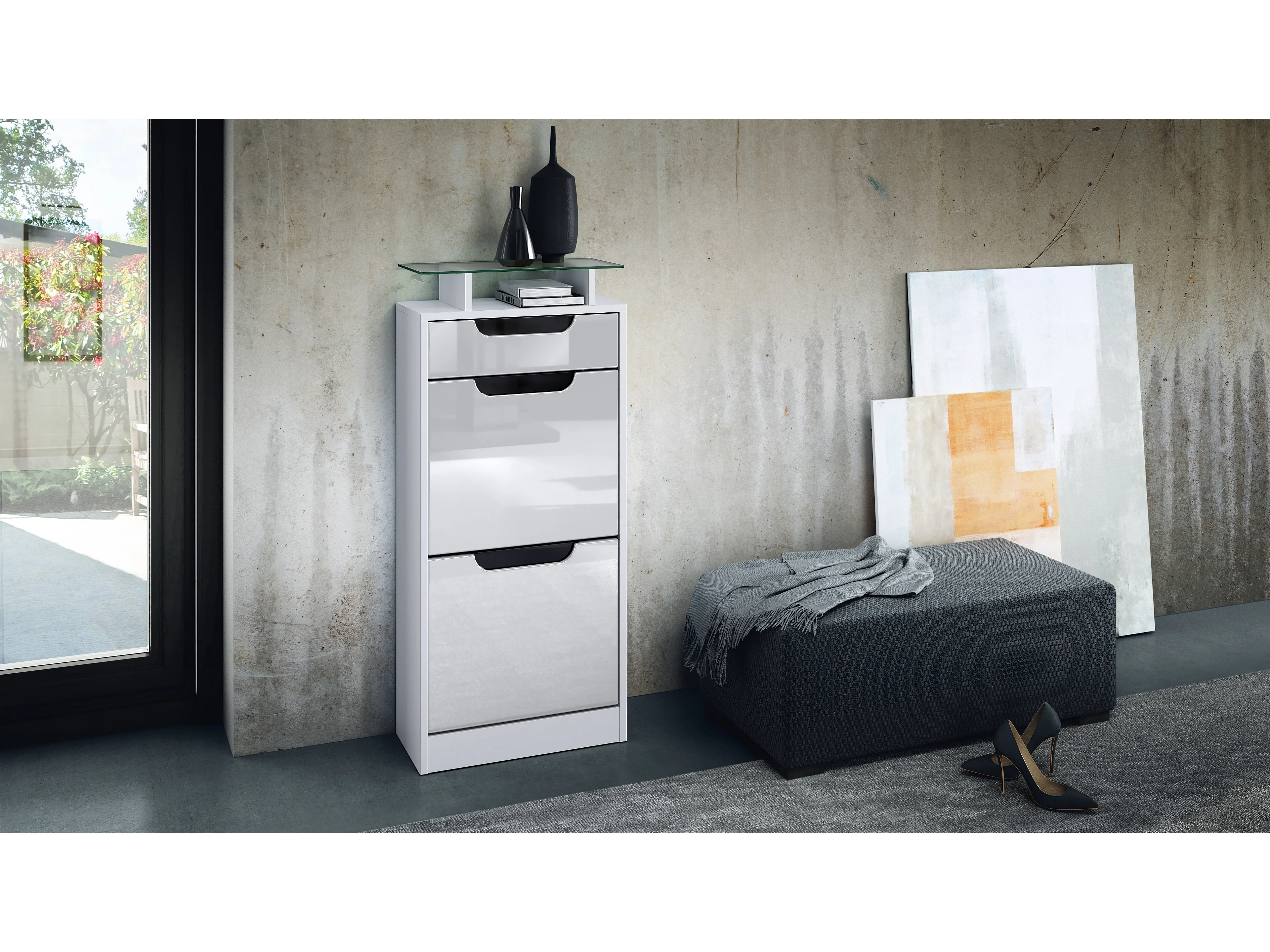 SCHUHSCHRANK Fiesta Weiß Hochglanz / Schwarz Hochglanz