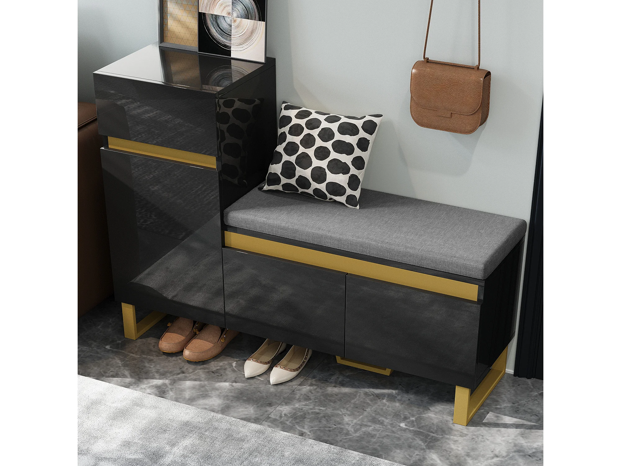 Schuhschrank für den Eingangsbereich – 120 x 35 x 85 cm – mit 2 Türen + 1 Schublade + Sitzbank – MDF – schwarz