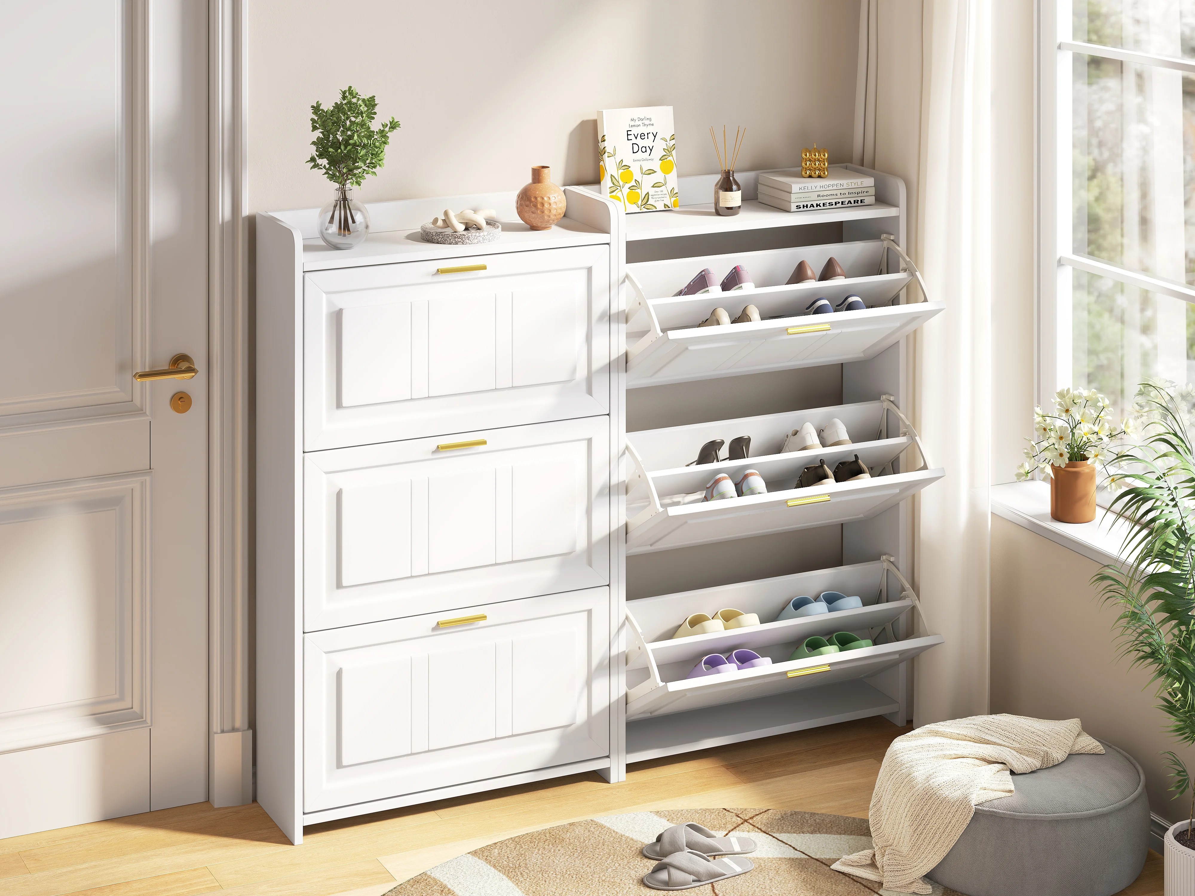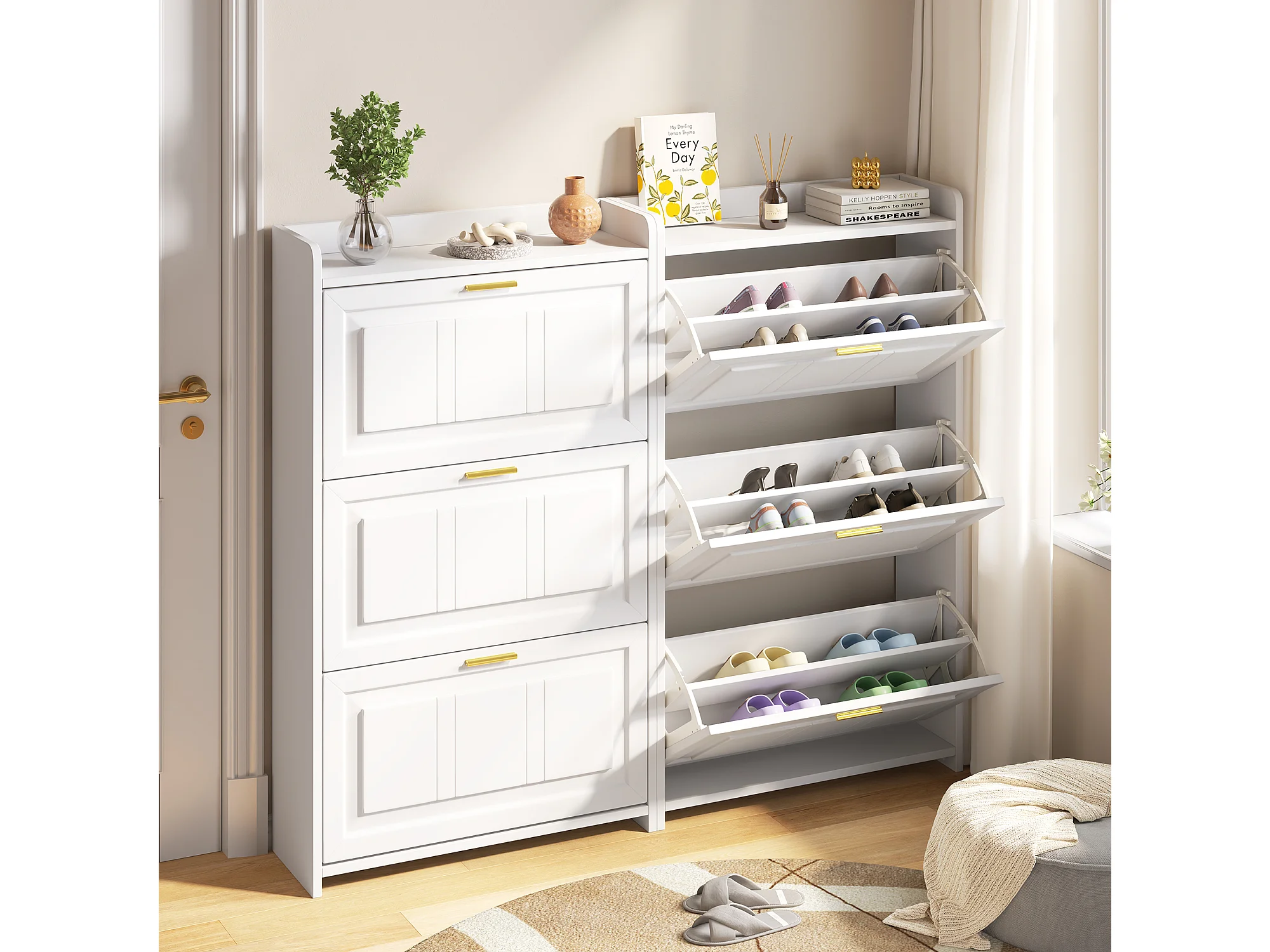 Schuhschrank für den Eingangsbereich – 2 x 70 x 24 x 120 cm – mit 6 Fächern – MDF + Spanplatte – weiß