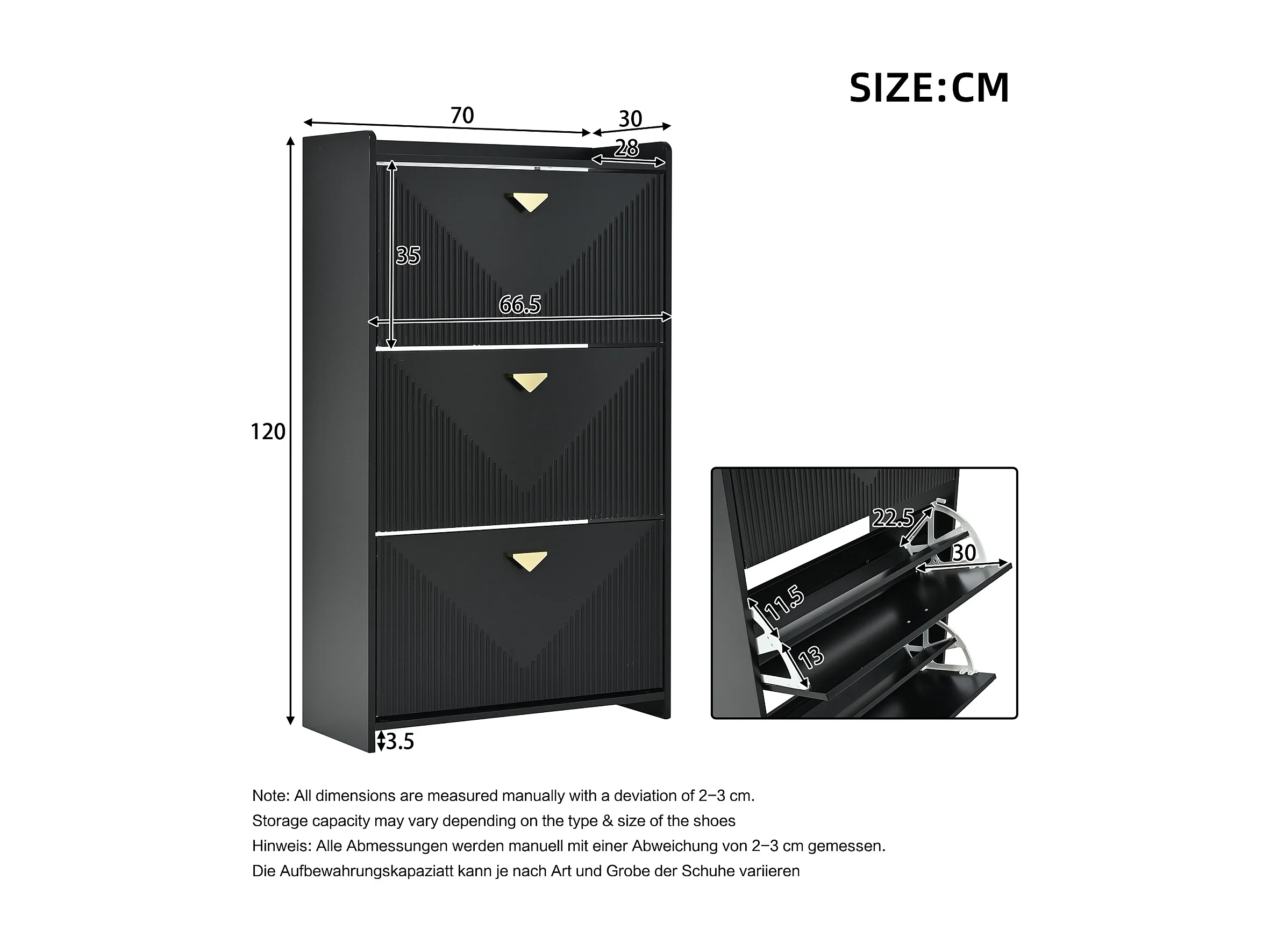 Schuhschrank für den Eingangsbereich – 2 x 70 x 30 x 120 cm – mit 3 Klapptüren – MDF – schwarz