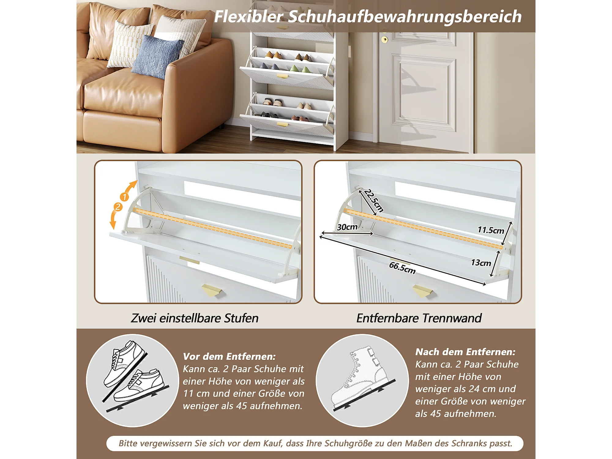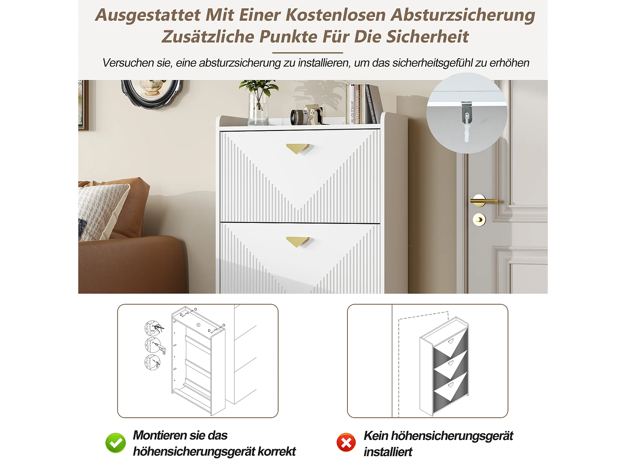 Schuhschrank für den Eingangsbereich – 70 x 30 x 120 cm – mit 3 Klapptüren – MDF – weiß
