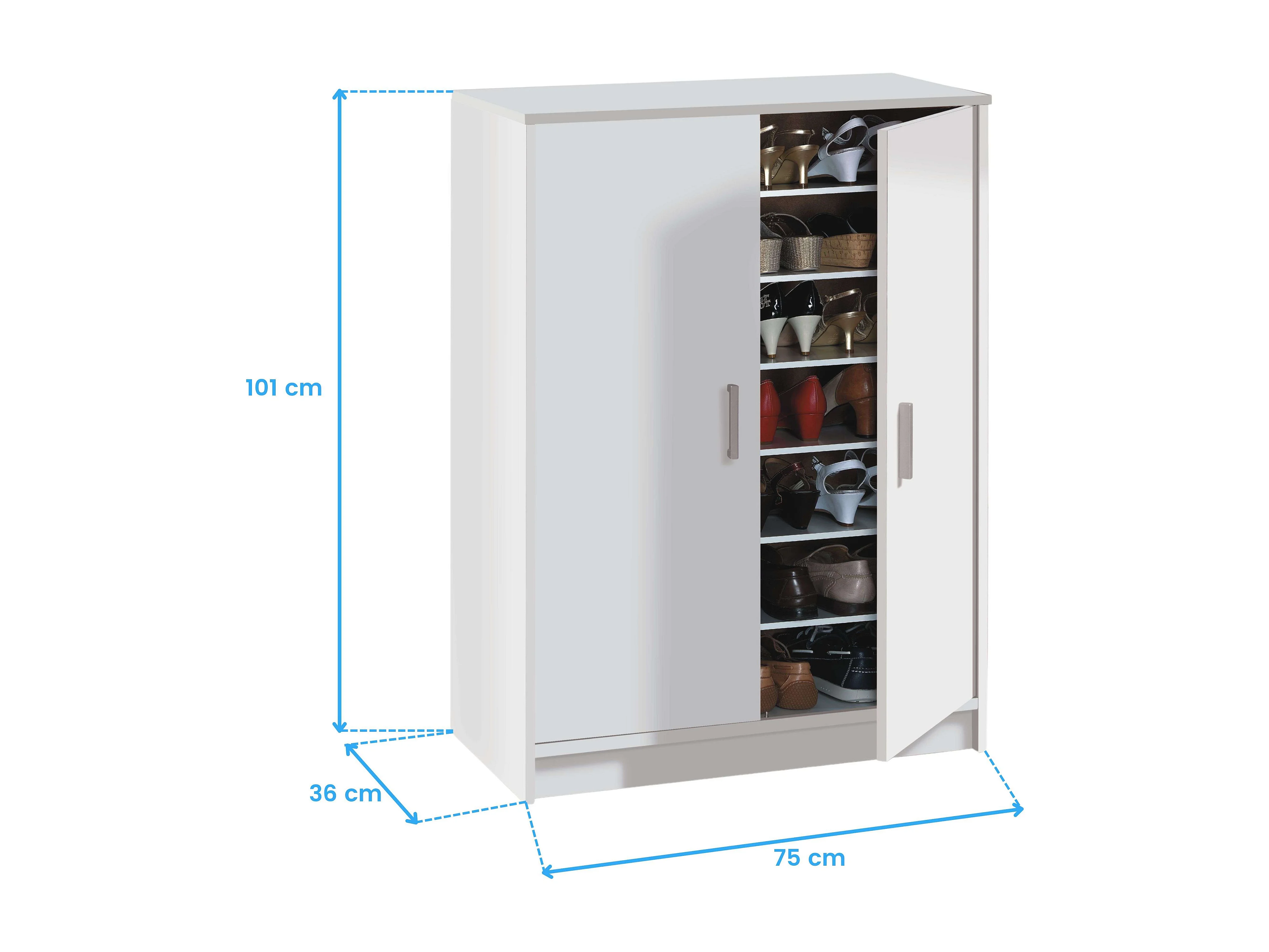 Schuhschrank mit 2 Türen und 6 Aufbewahrungsfächern Basic - L101 cm