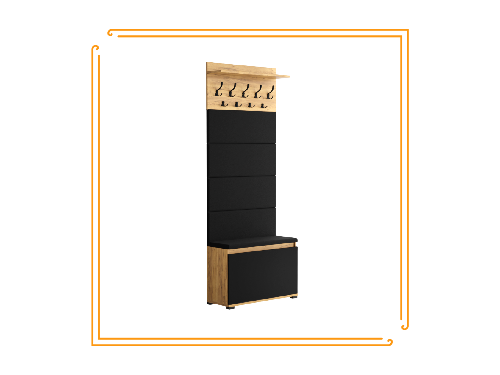 Schuhschrank 50cm mit Aufbewahrung, gepolsterter Sitz, Regal, Eiche Craft